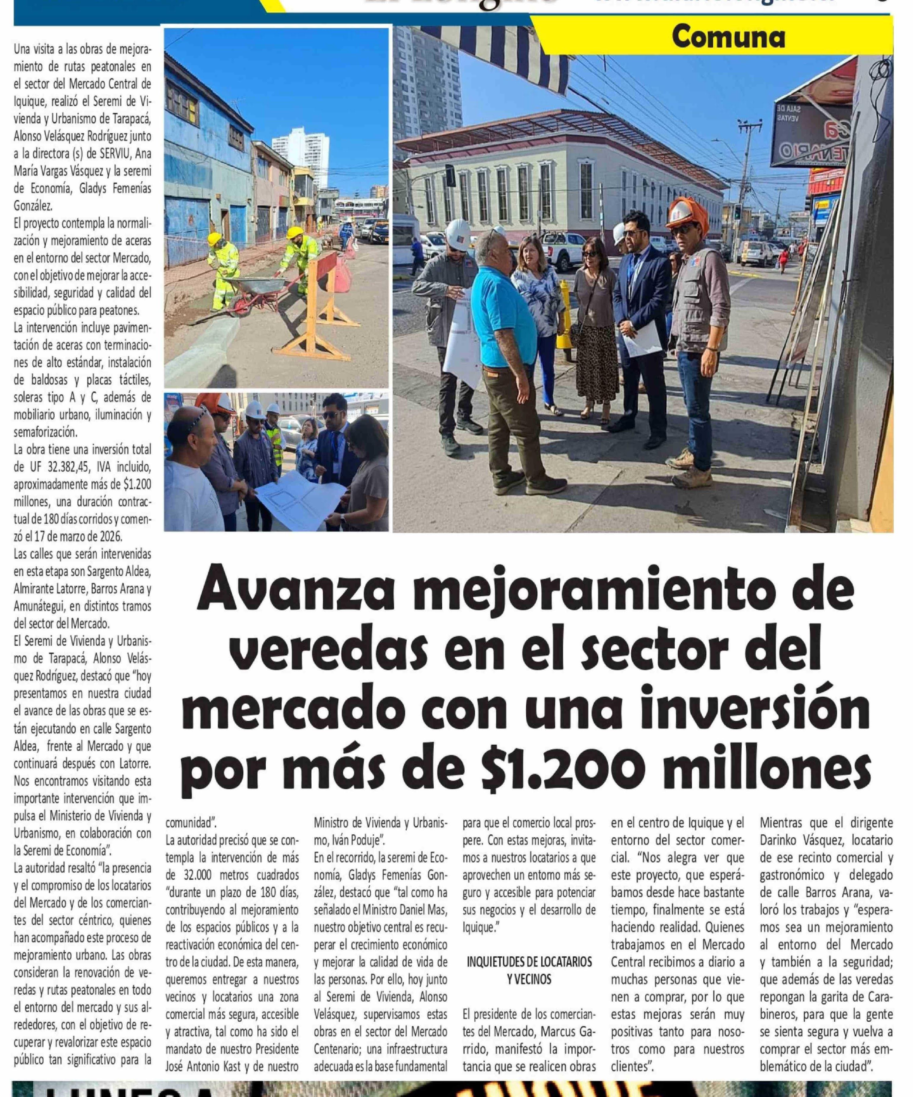 Avanza mejoramiento de veredas en el sector del mercado con una inversión por más de $1.200 millones