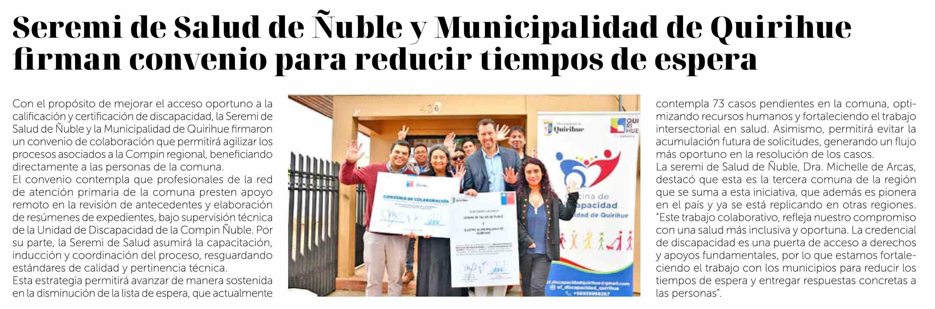 Seremi de Salud de Ñuble y Municipalidad de Quirihue firman convenio para reducir tiempos de espera