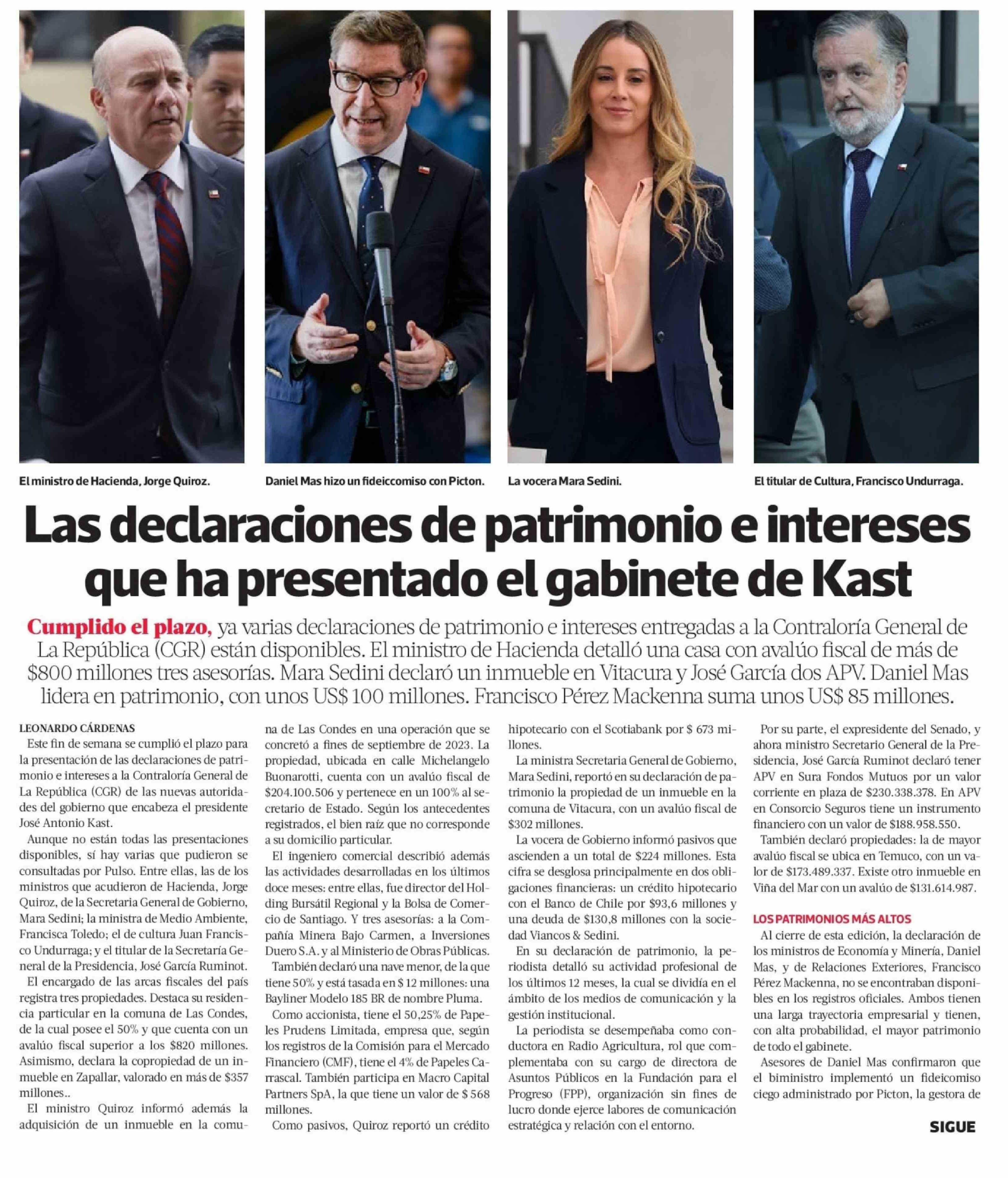 Título: Las declaraciones de patrimonio e intereses que ha presentado el gabinete de Kast