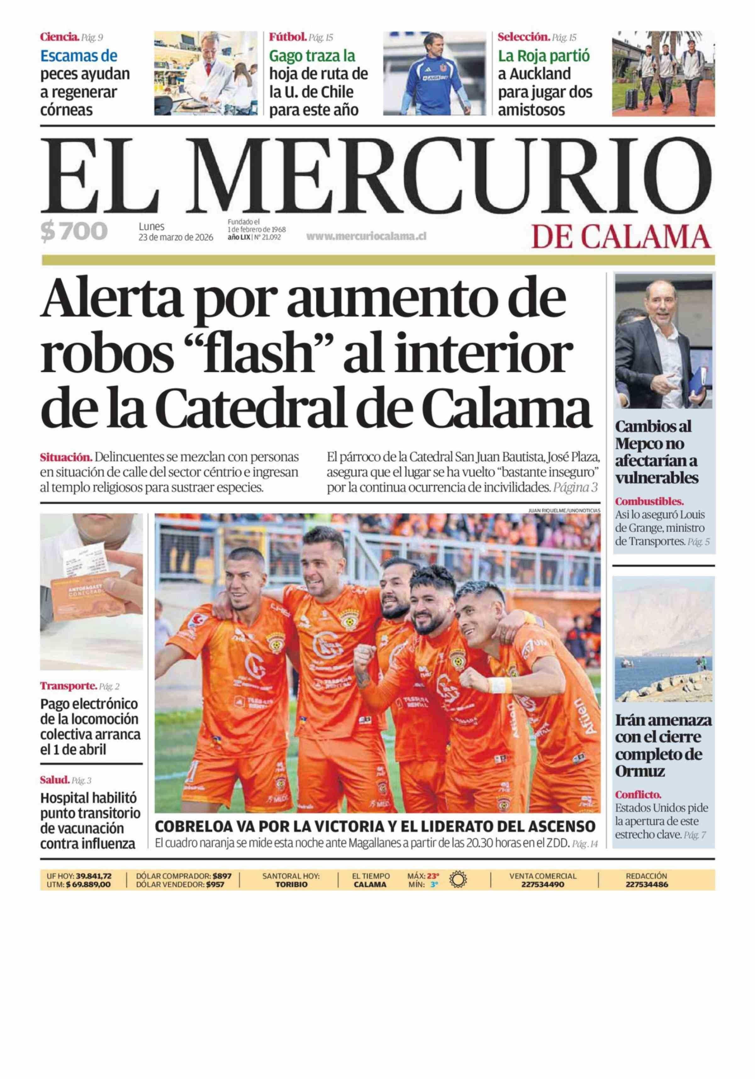 PORTADA EL MERCURIO DE CALAMA CHILE