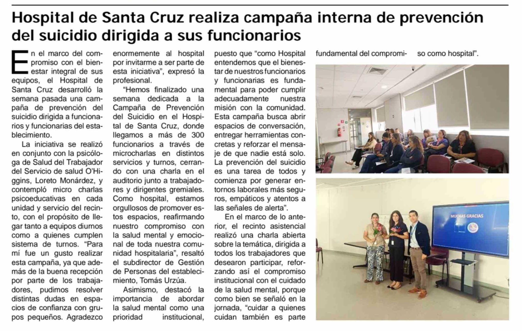 Hospital de Santa Cruz realiza campaña interna de prevención del suicidio dirigida a sus funcionarios