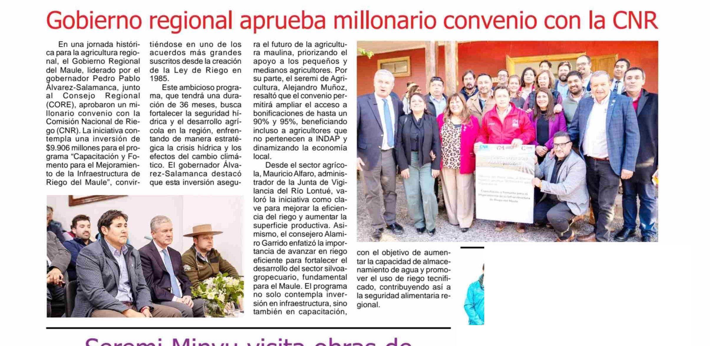 Gobierno regional aprueba millonario convenio con la CNR