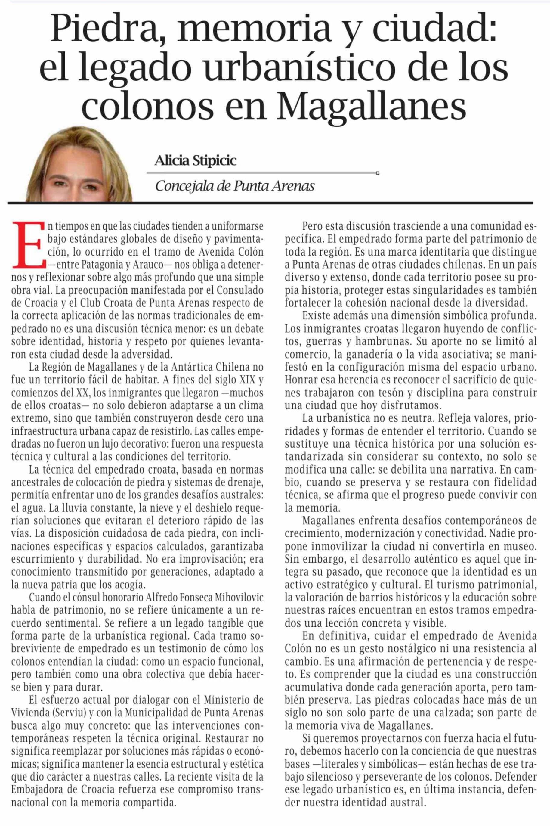 Título: Columnas de Opinión: Piedra, memoria y ciudad: el legado urbanístico de los colonos en Magallanes