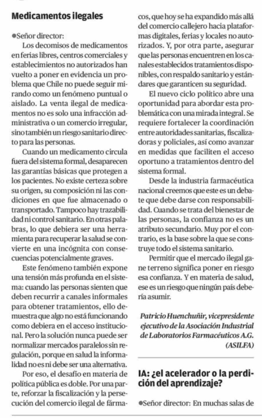 Cartas: Medicamentos ilegales