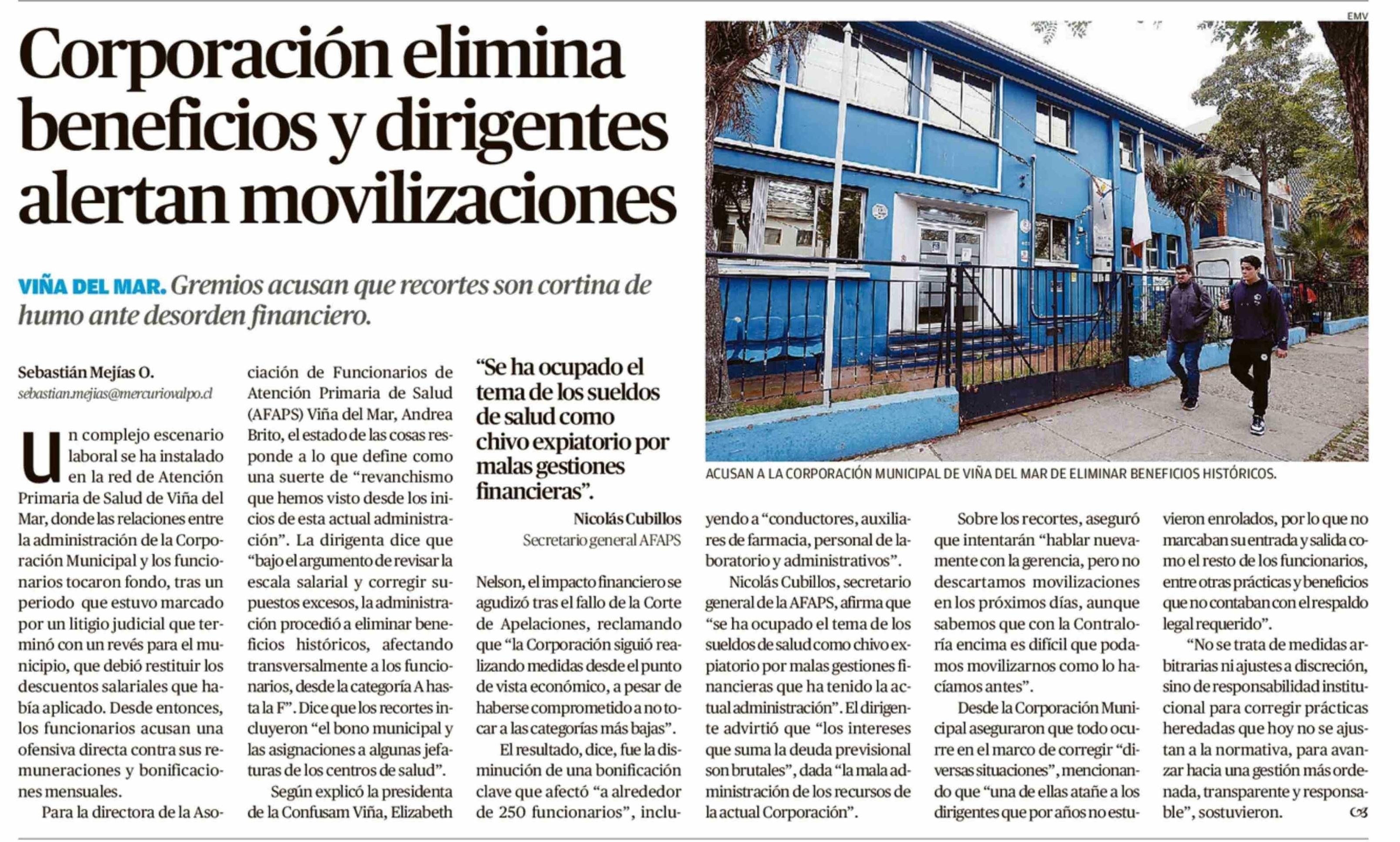 Corporación elimina beneficios y dirigentes alertan movilizaciones