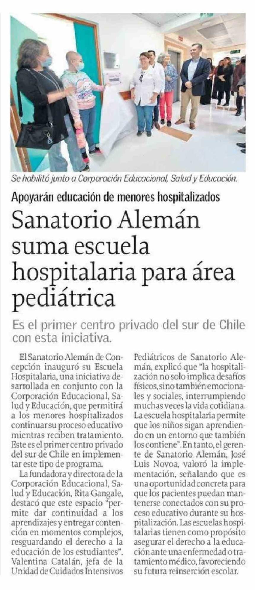 Sanatorio Alemán suma escuela hospitalaria para área pediátrica