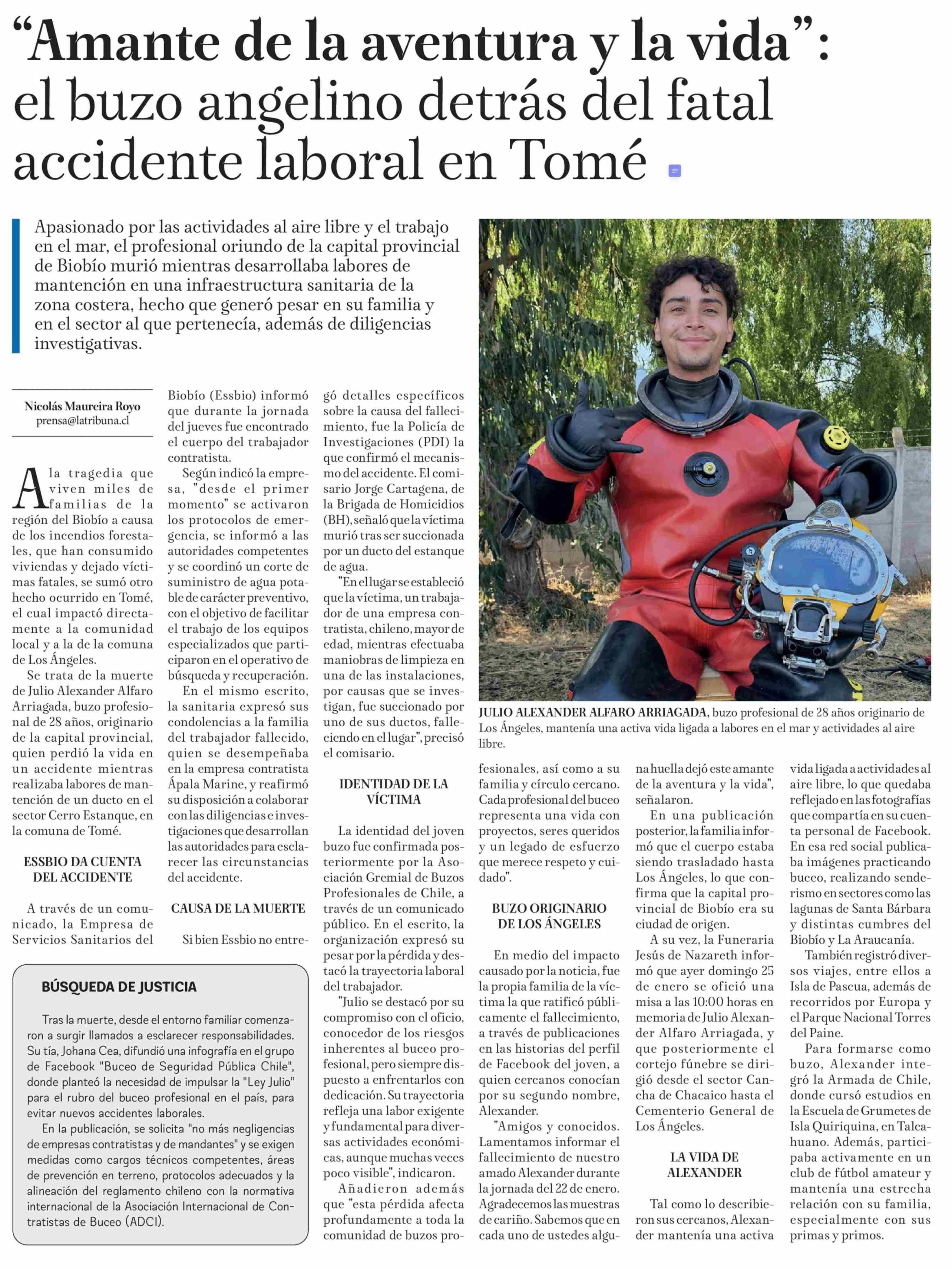 "Amante de la aventura y la vida": el buzo angelino detrás del fatal accidente laboral en Tomé