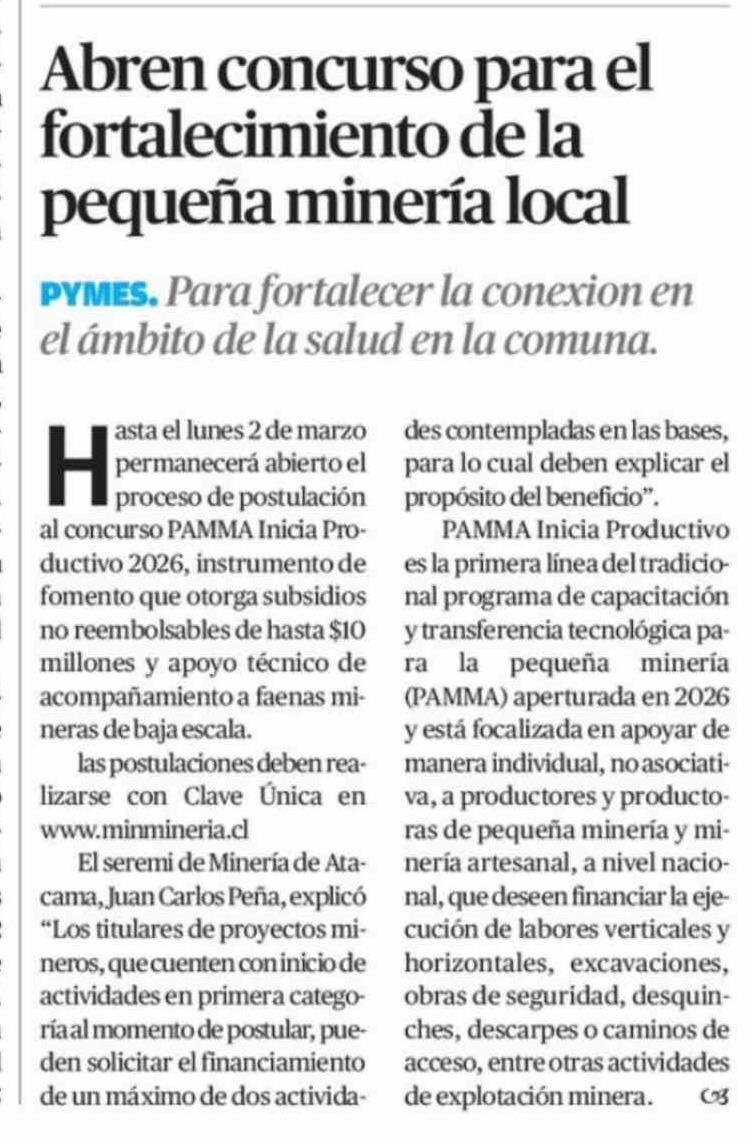 Abren concurso para el fortalecimiento de la pequeña minería local