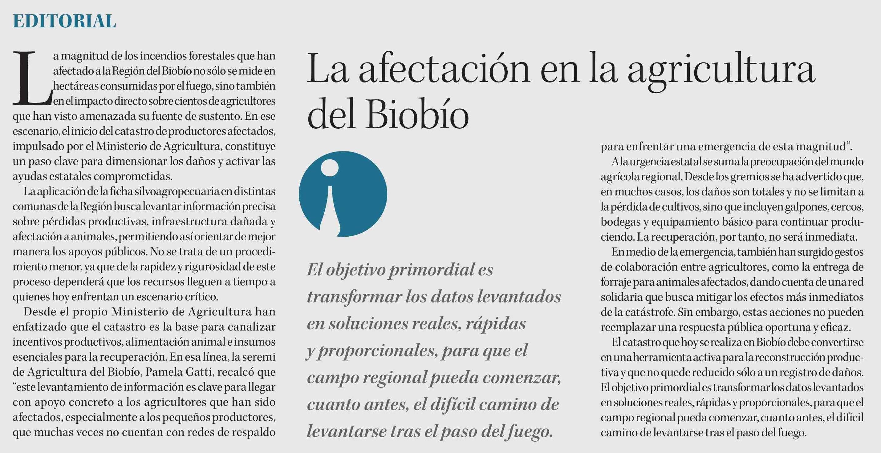 Editorial: La afectación en la agricultura del Biobío