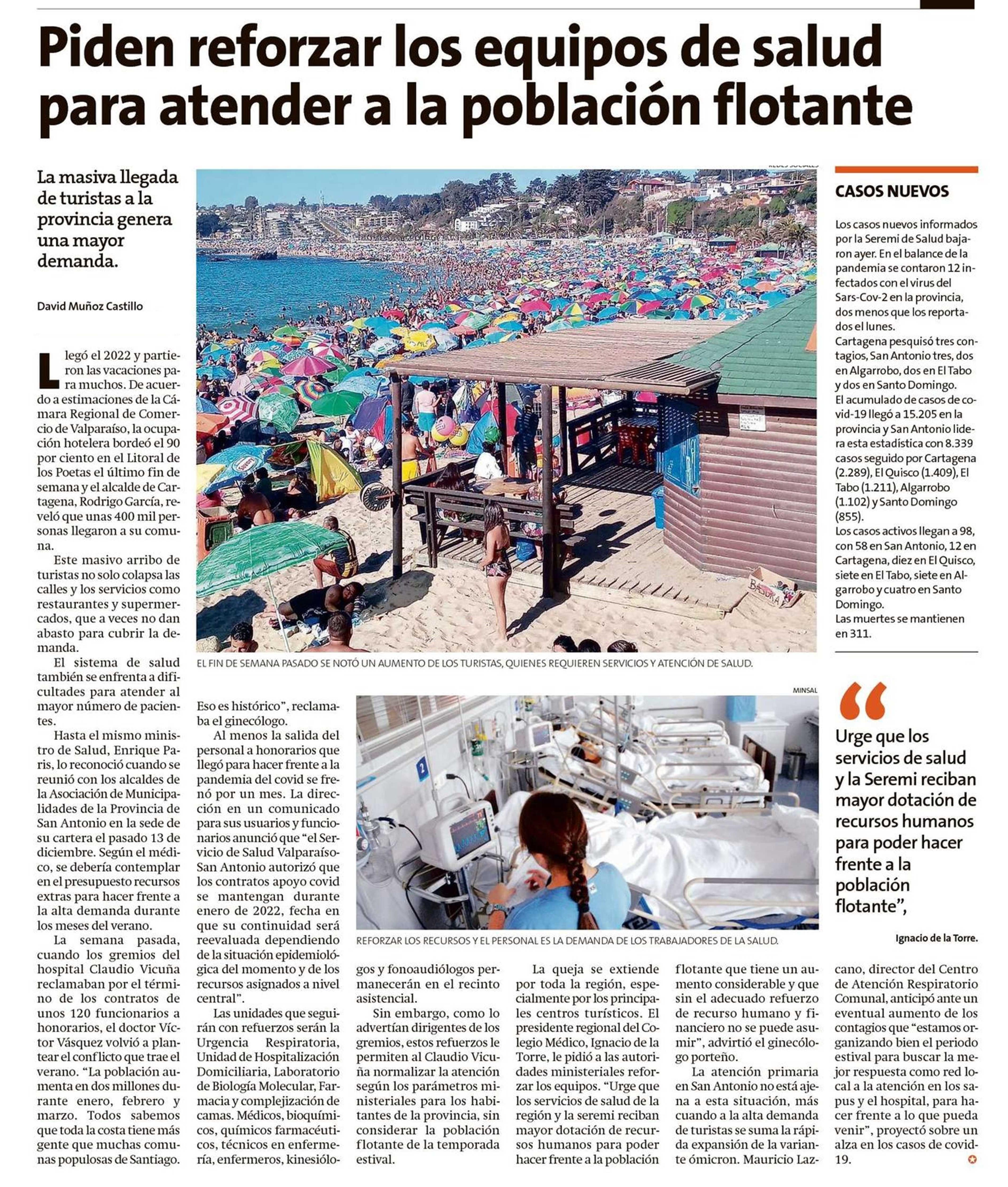Piden reforzar los equipos de salud para atender a la población flotante