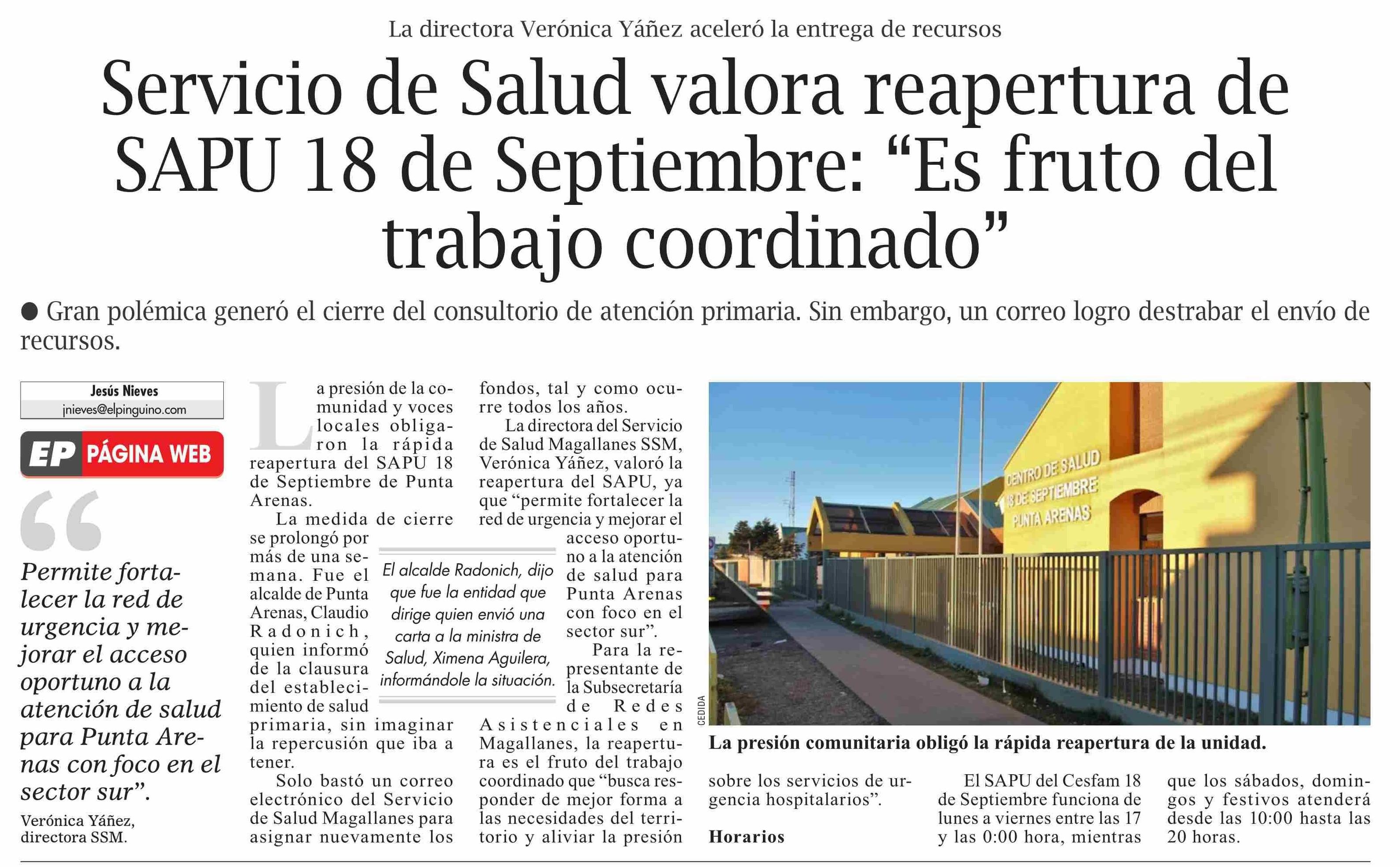 Servicio de Salud valora reapertura de SAPU 18 de Septiembre: "Es fruto del trabajo coordinado"