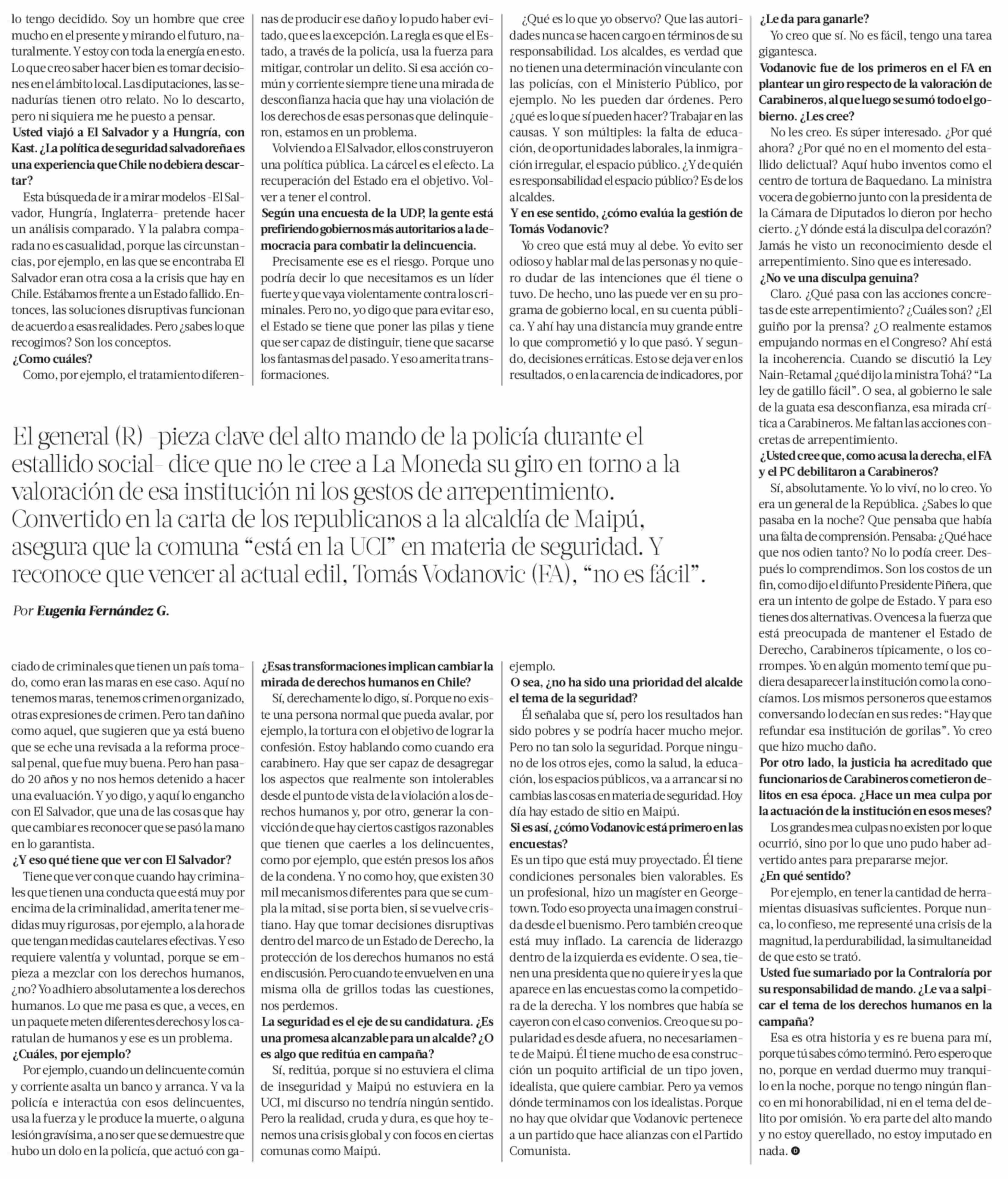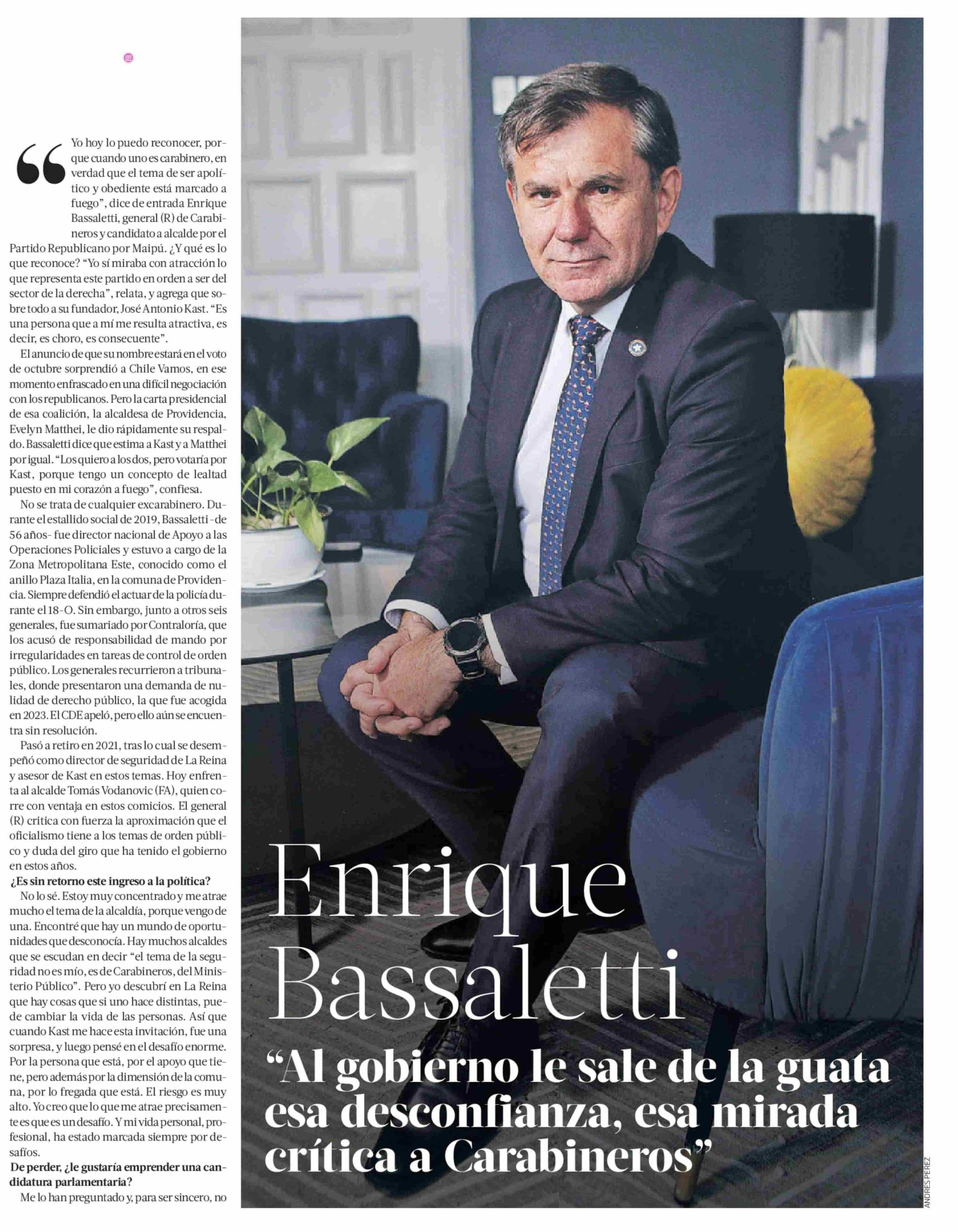 Enrique Bassaletti Al gobierno le sale de la guata esa desconfianza, esa mirada critica a carabineros