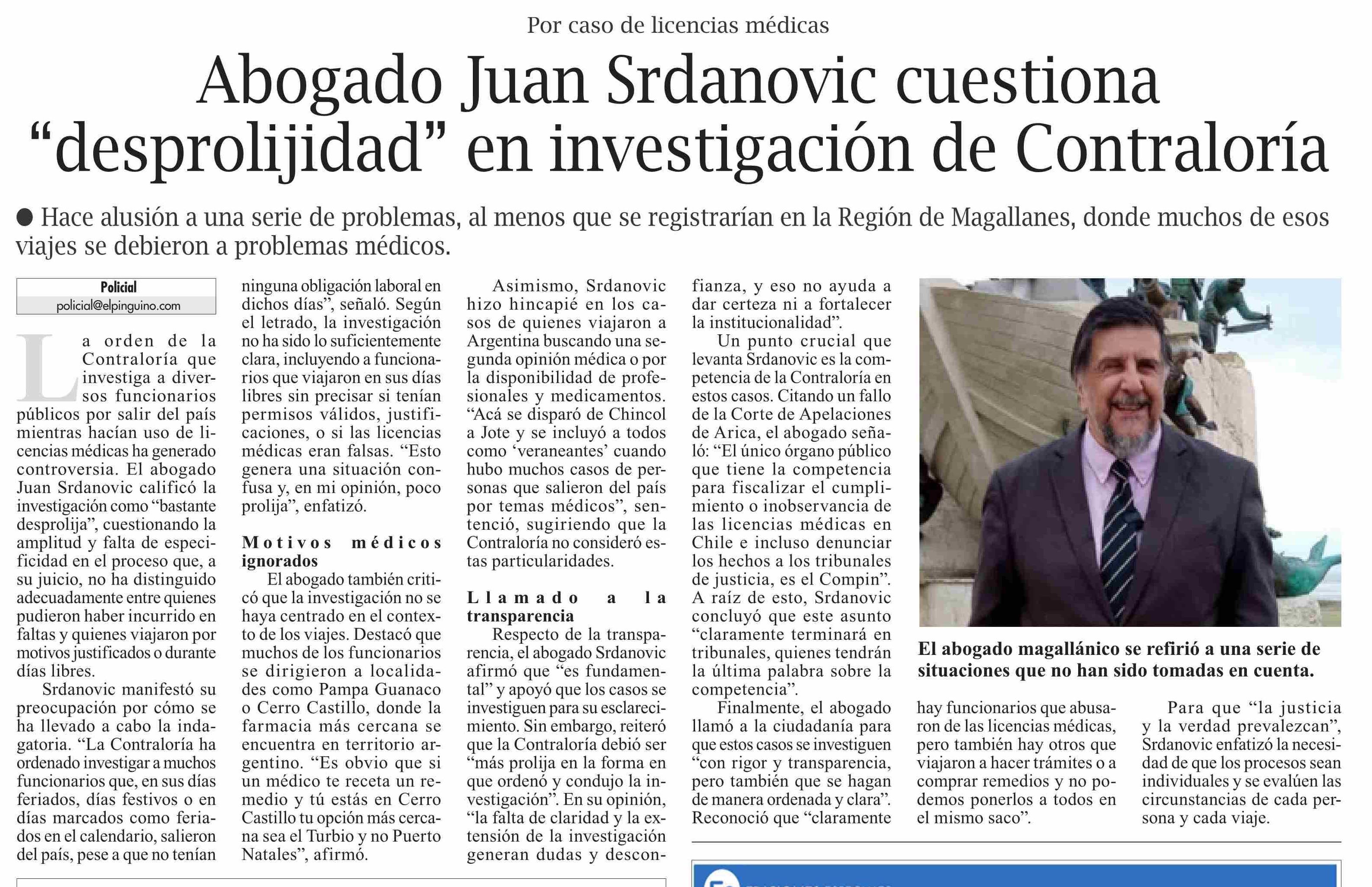 Abogado Juan Srdanovic cuestiona “desprolijidad” en investigación de Contraloría