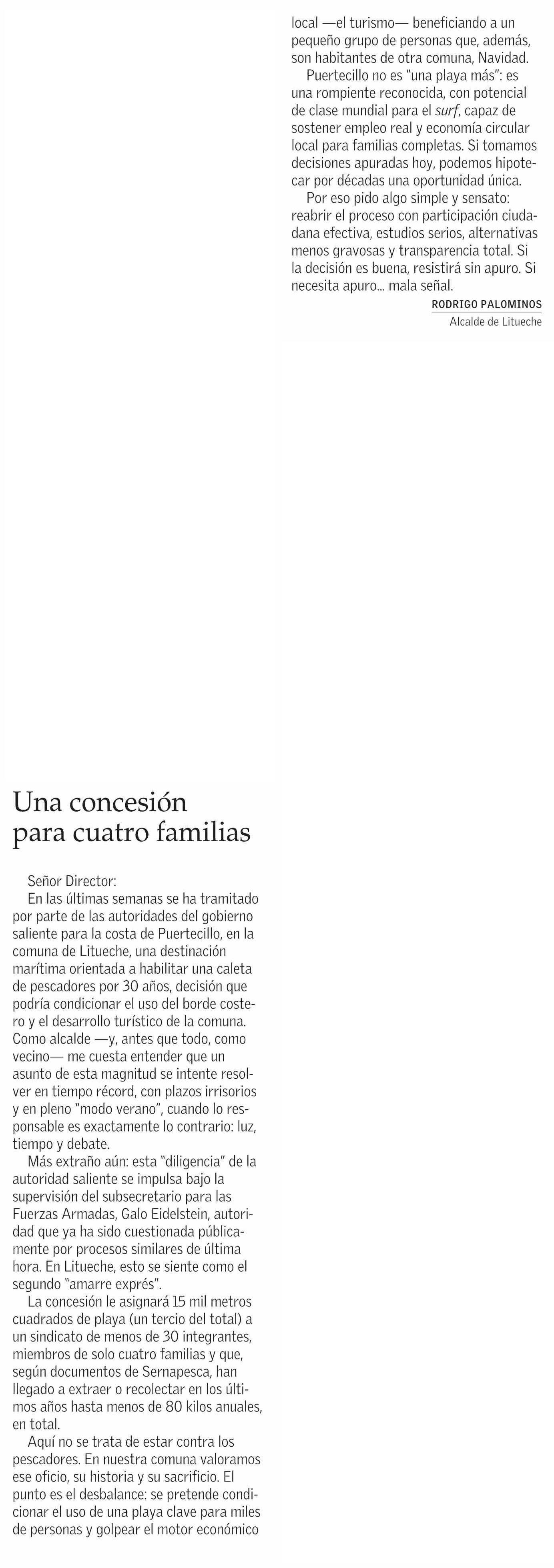 Cartas: Una concesión para cuatro familias