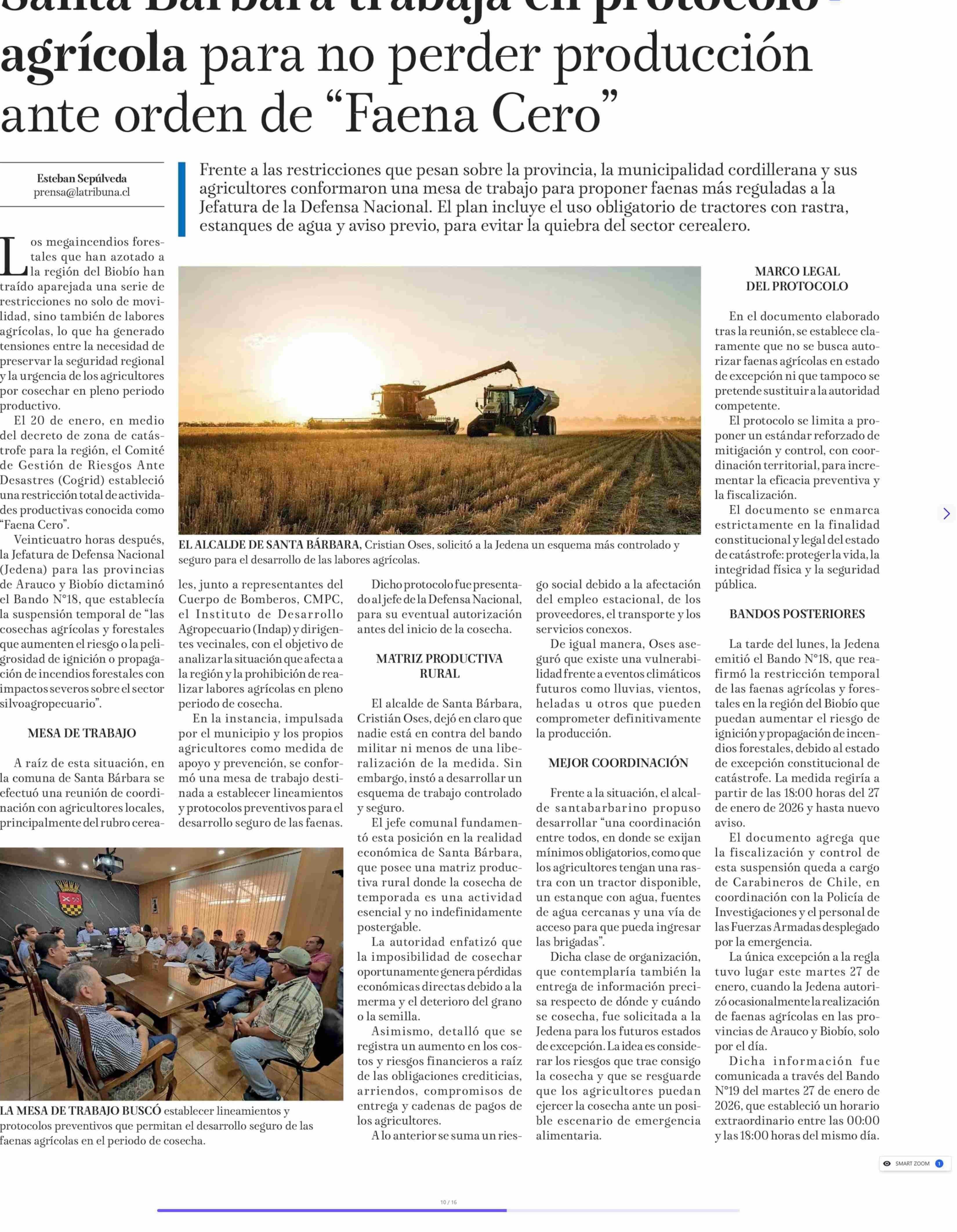 Santa Bárbara trabaja en protocolo agrícola para no perder producción ante orden de "Faena Cero"