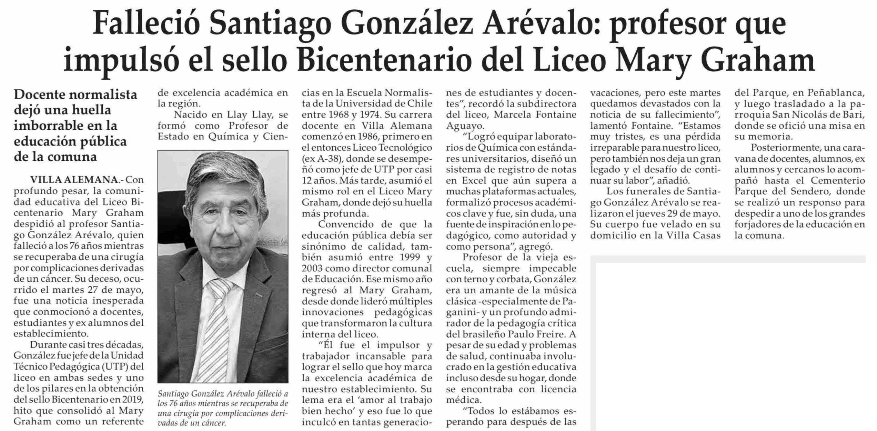 Falleció Santiago González Arévalo: profesor que impulsó el sello Bicentenario del Liceo Mary Graham