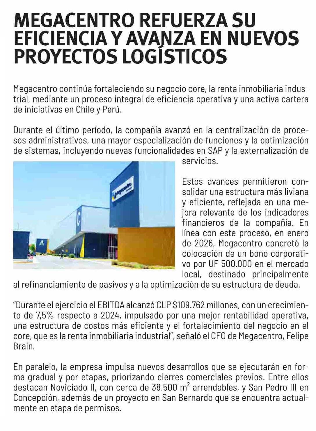 MEGACENTRO REFUERZA SU EFICIENCIA YAVANZA EN NUEVOS PROYECTOS LOGISTICOS