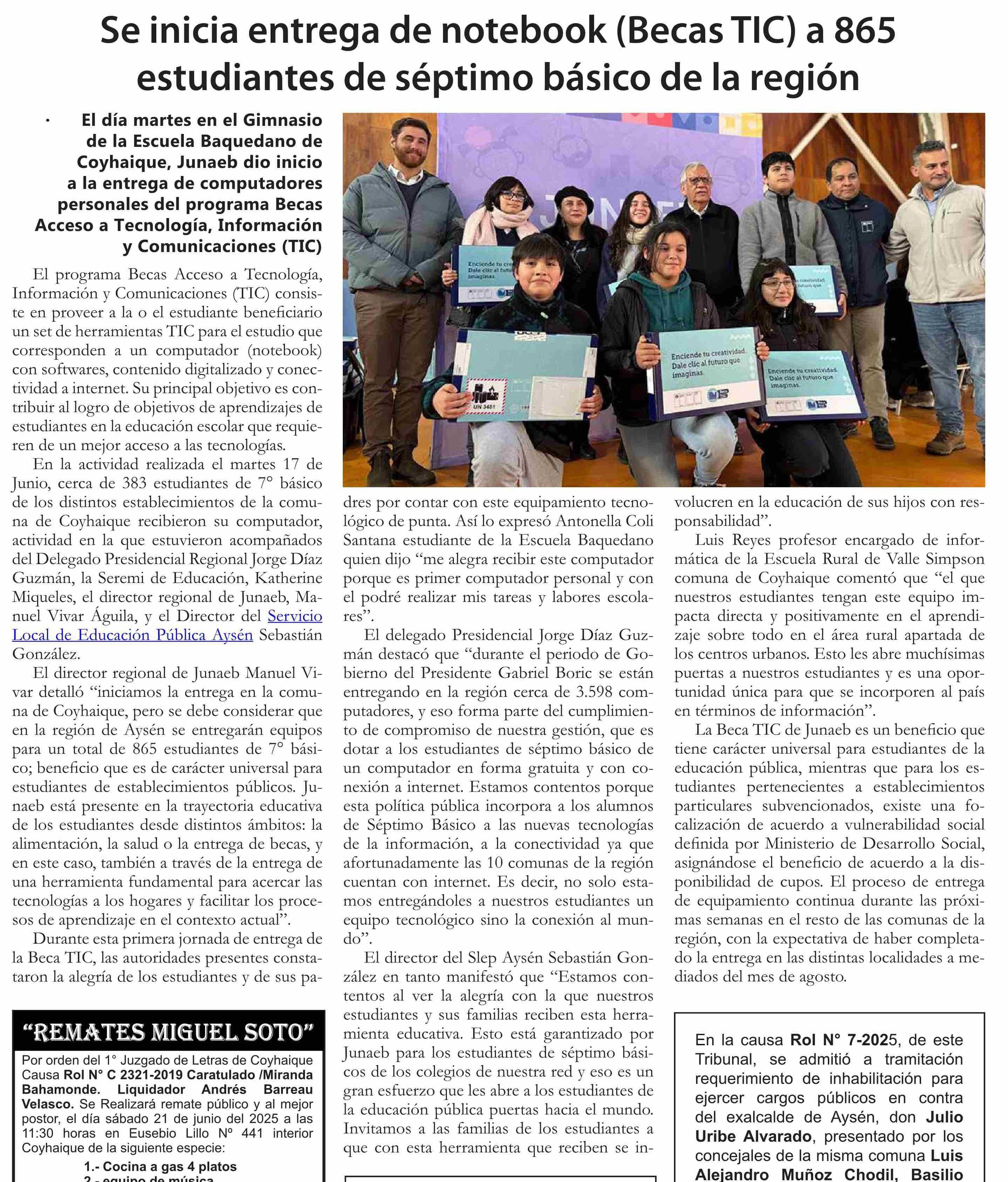 Se inicia entrega de notebook (Becas TIC) a 865 estudiantes de séptimo básico de la región
