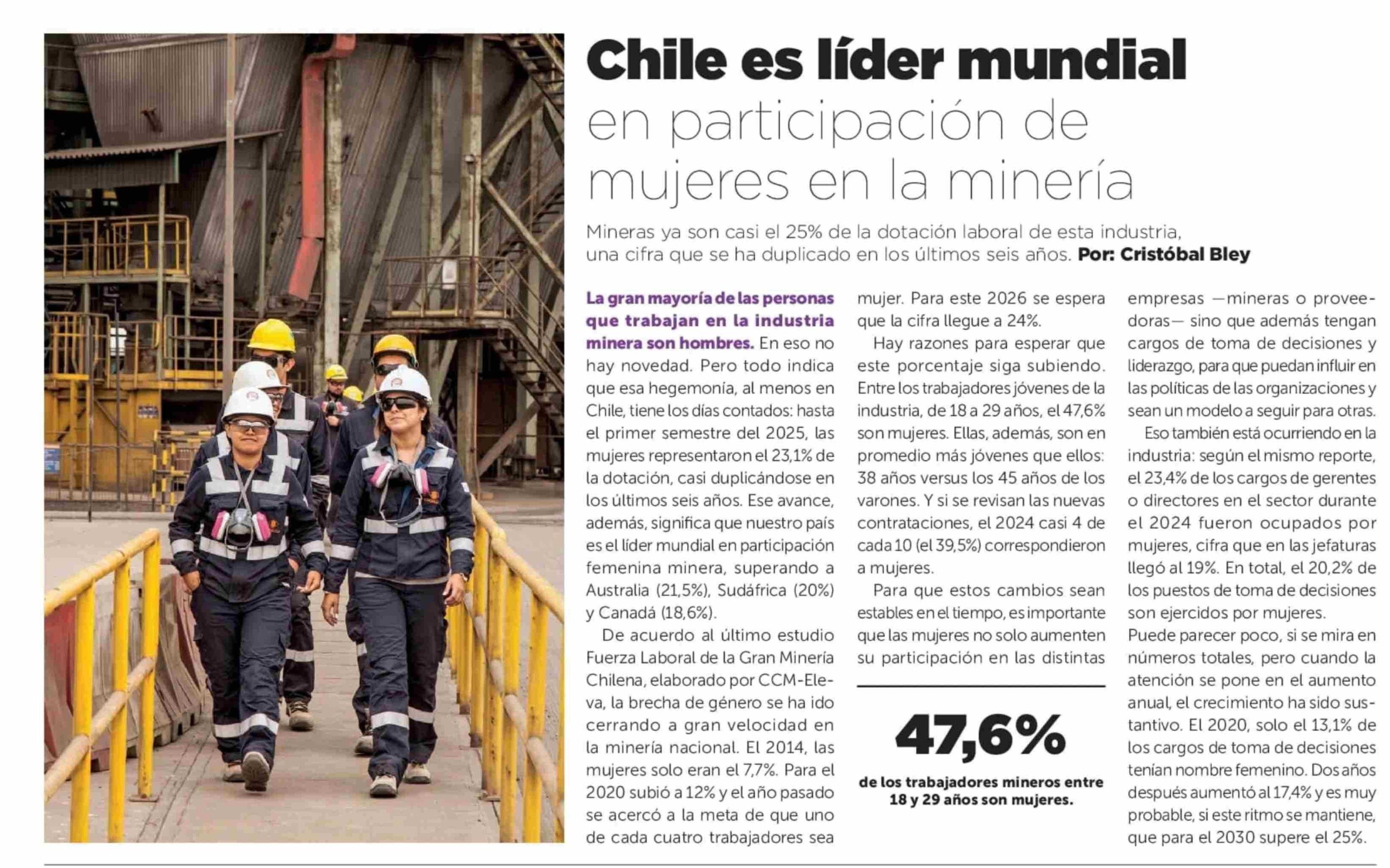 Chile es líder mundial en participación de mujeres en la minería