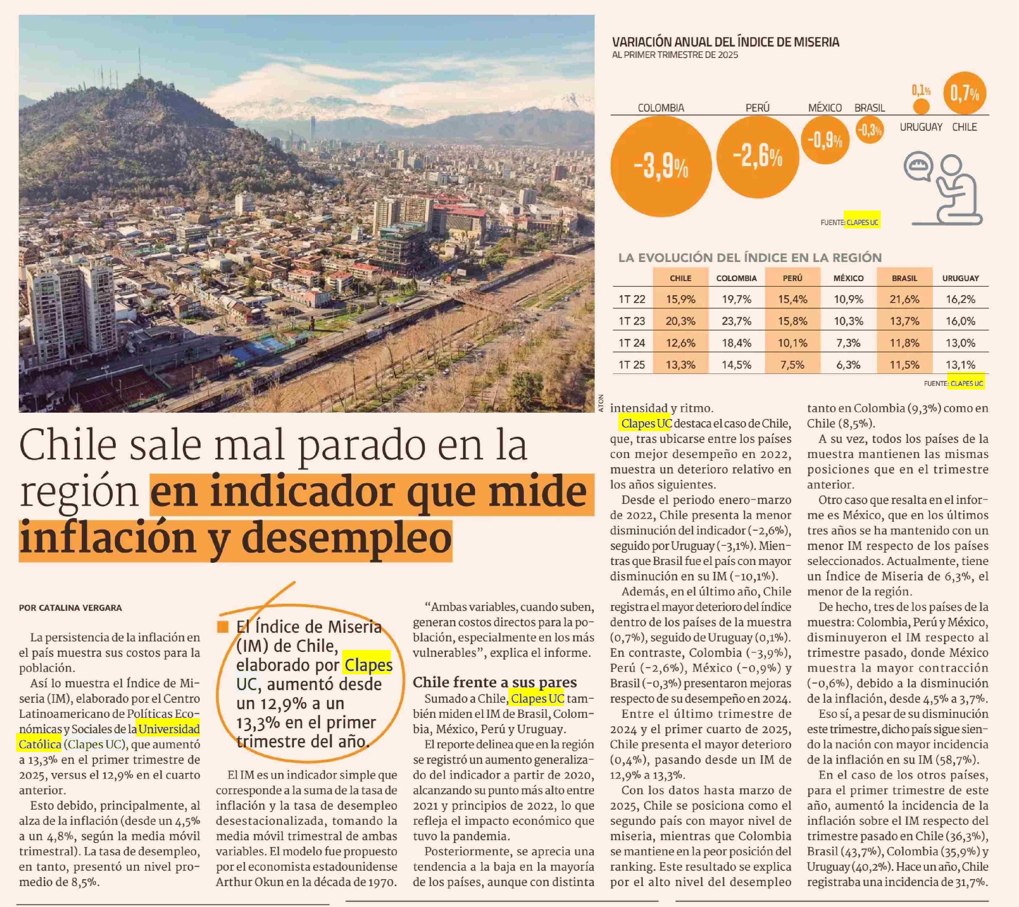 Chile sale mal parado en la región en indicador que mide inflación y desempleo