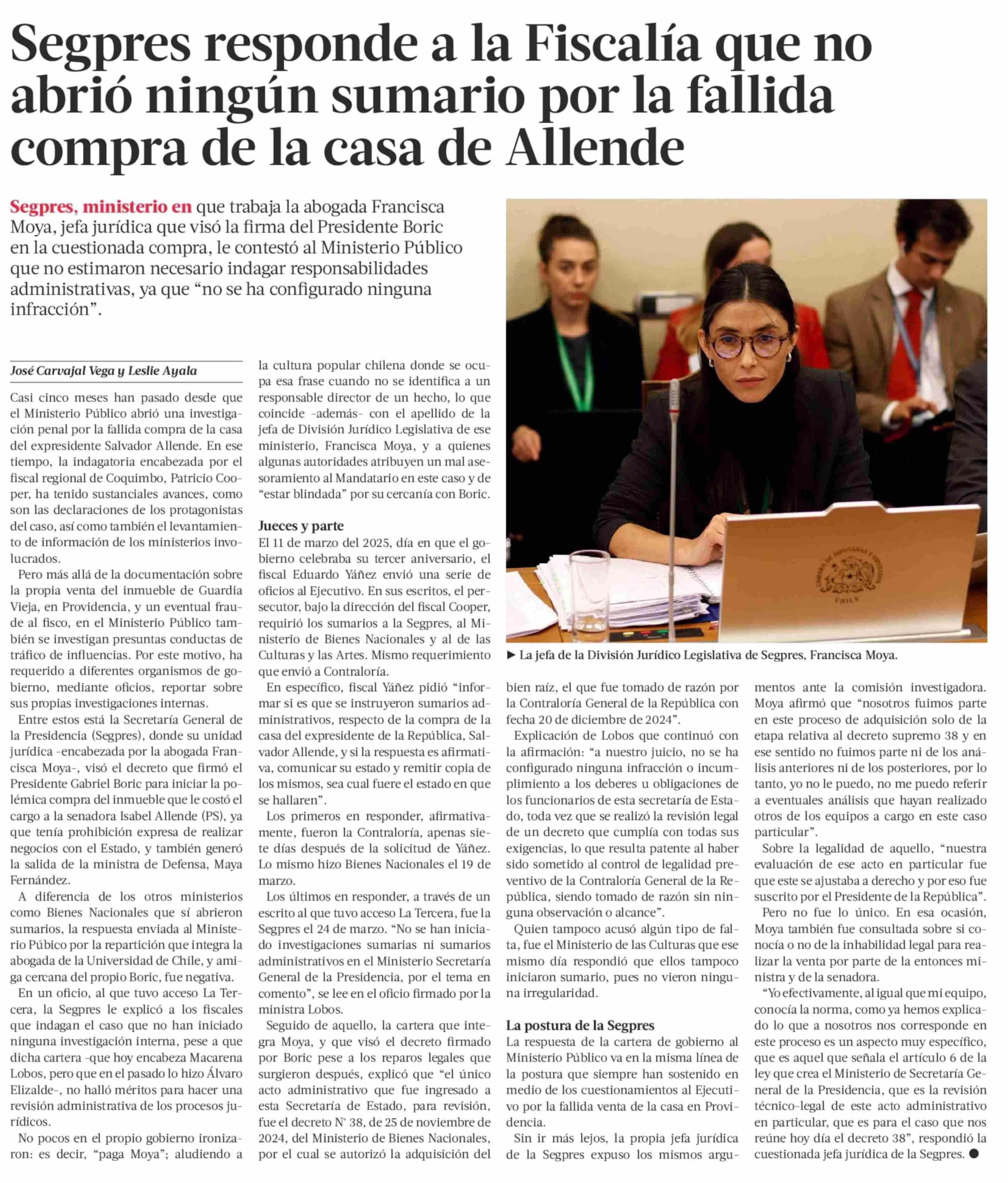 Segpres responde a la Fiscalía que no abrió ningún sumario por la fallida compra de la casa de Allende
