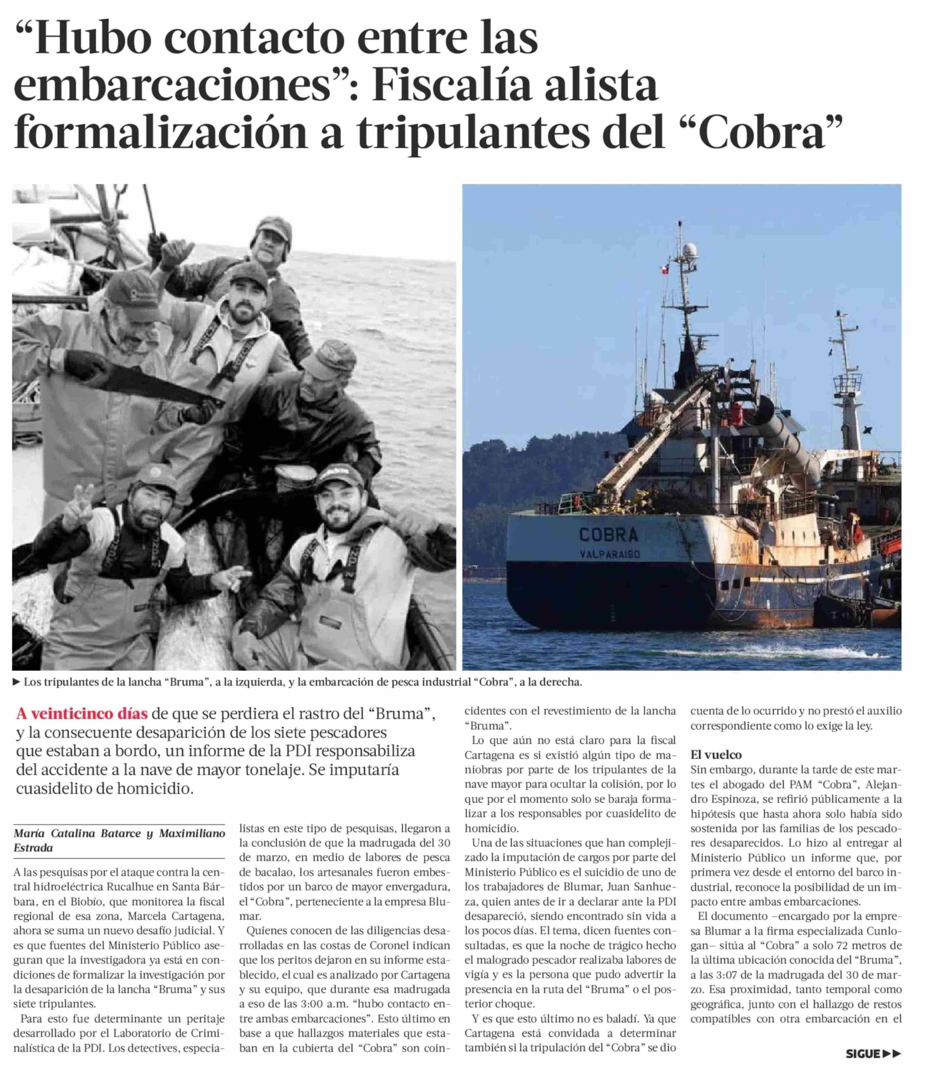 “Hubo contacto entre las embarcaciones”: Fiscalía alista formalización a tripulantes del “Cobra”