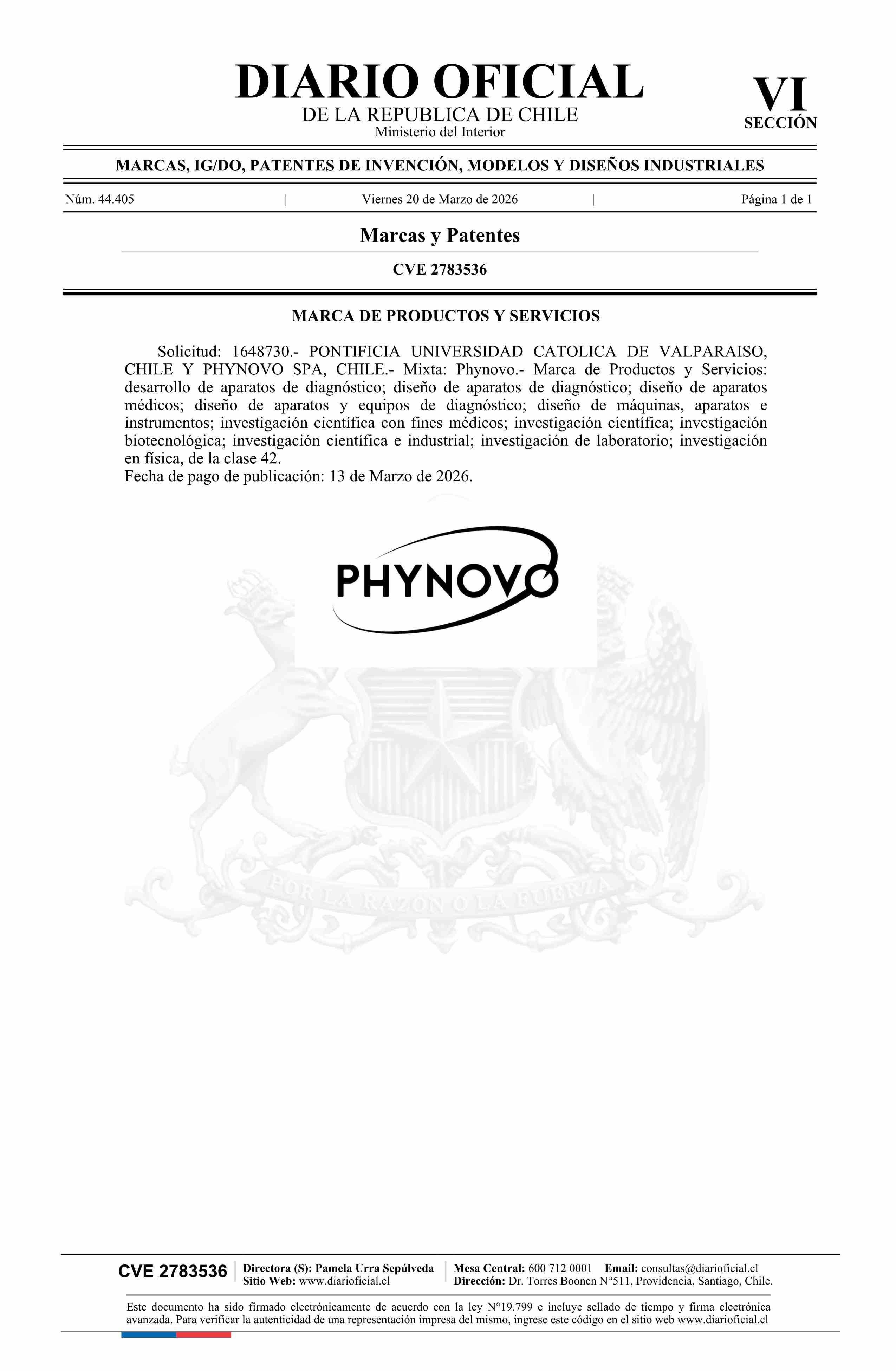 Diario Oficial Edición Electrónica (Diario Oficial de Chile - 6 Marcas Y Patentes)
