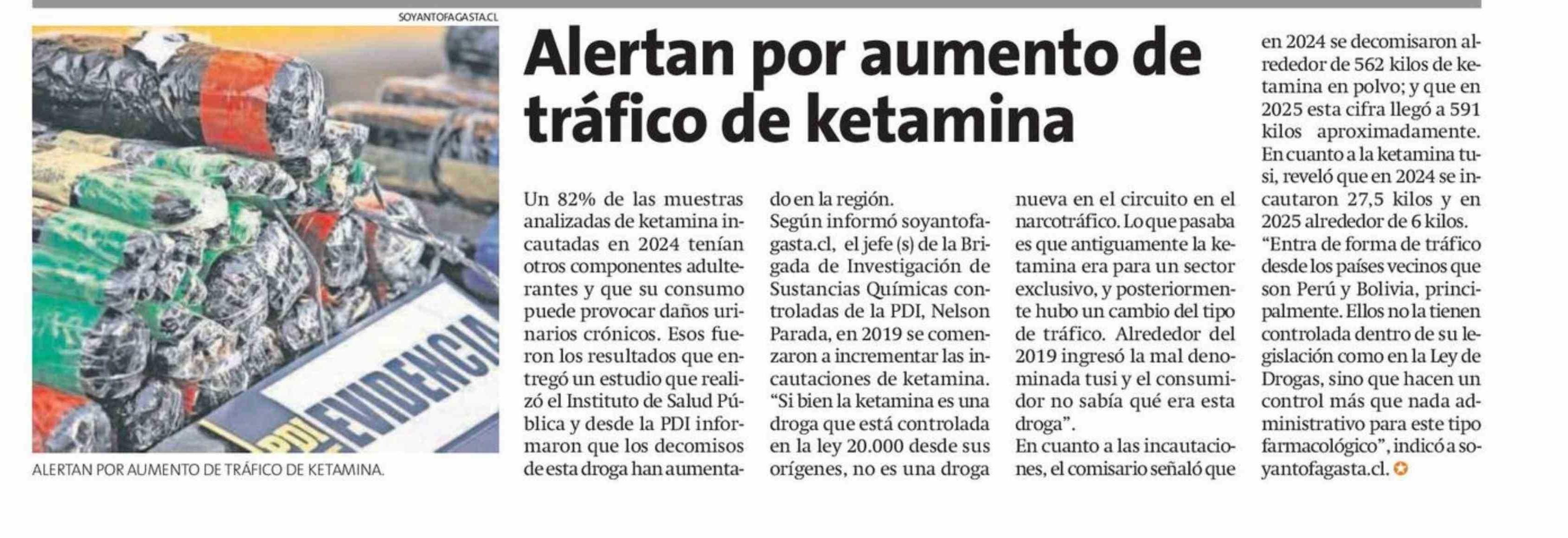 Alertan por aumento de tráfico de ketamina