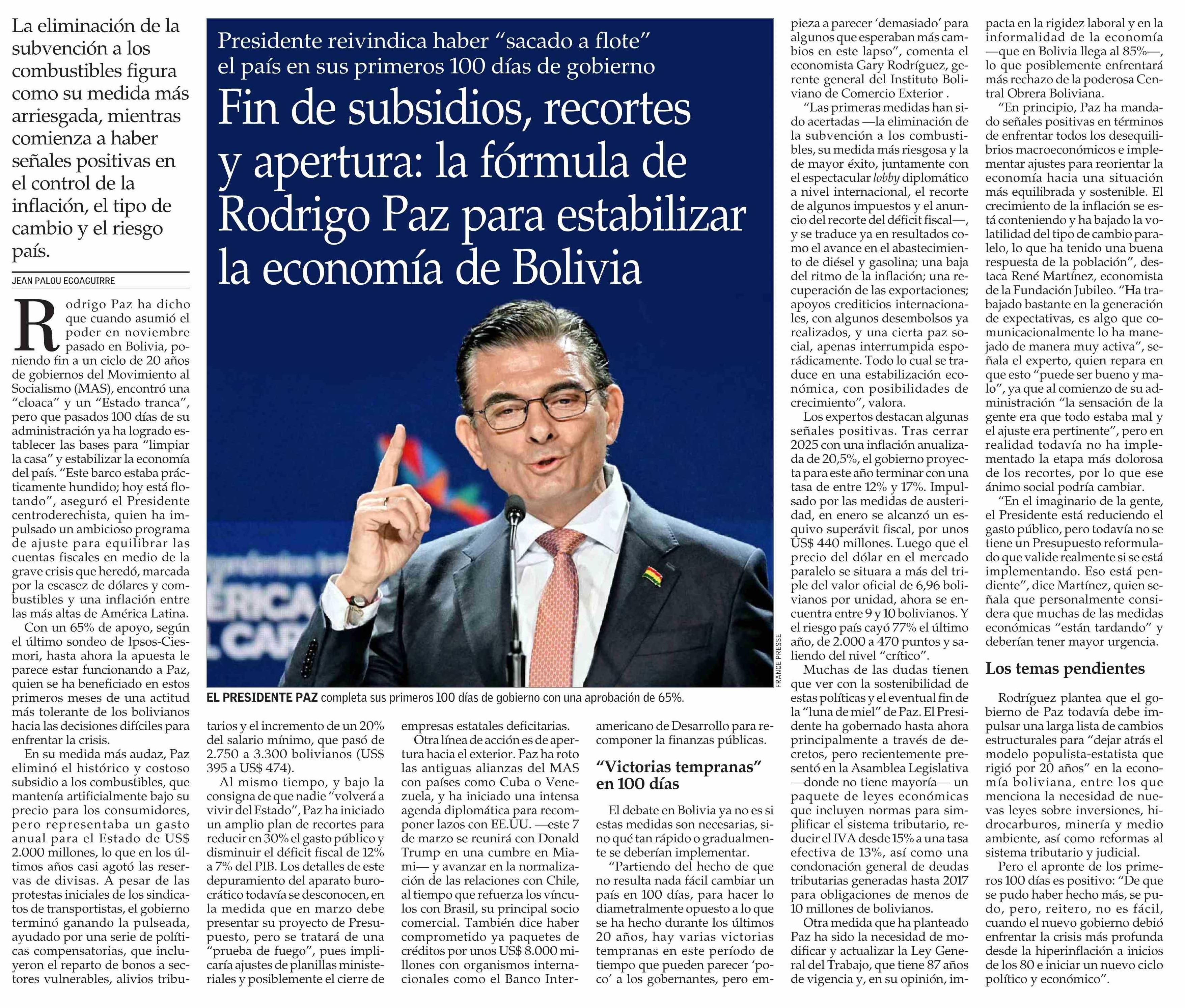 Fin de subsidios, recortes y apertura: la fórmula de Rodrigo Paz para estabilizar la economía de Bolivia