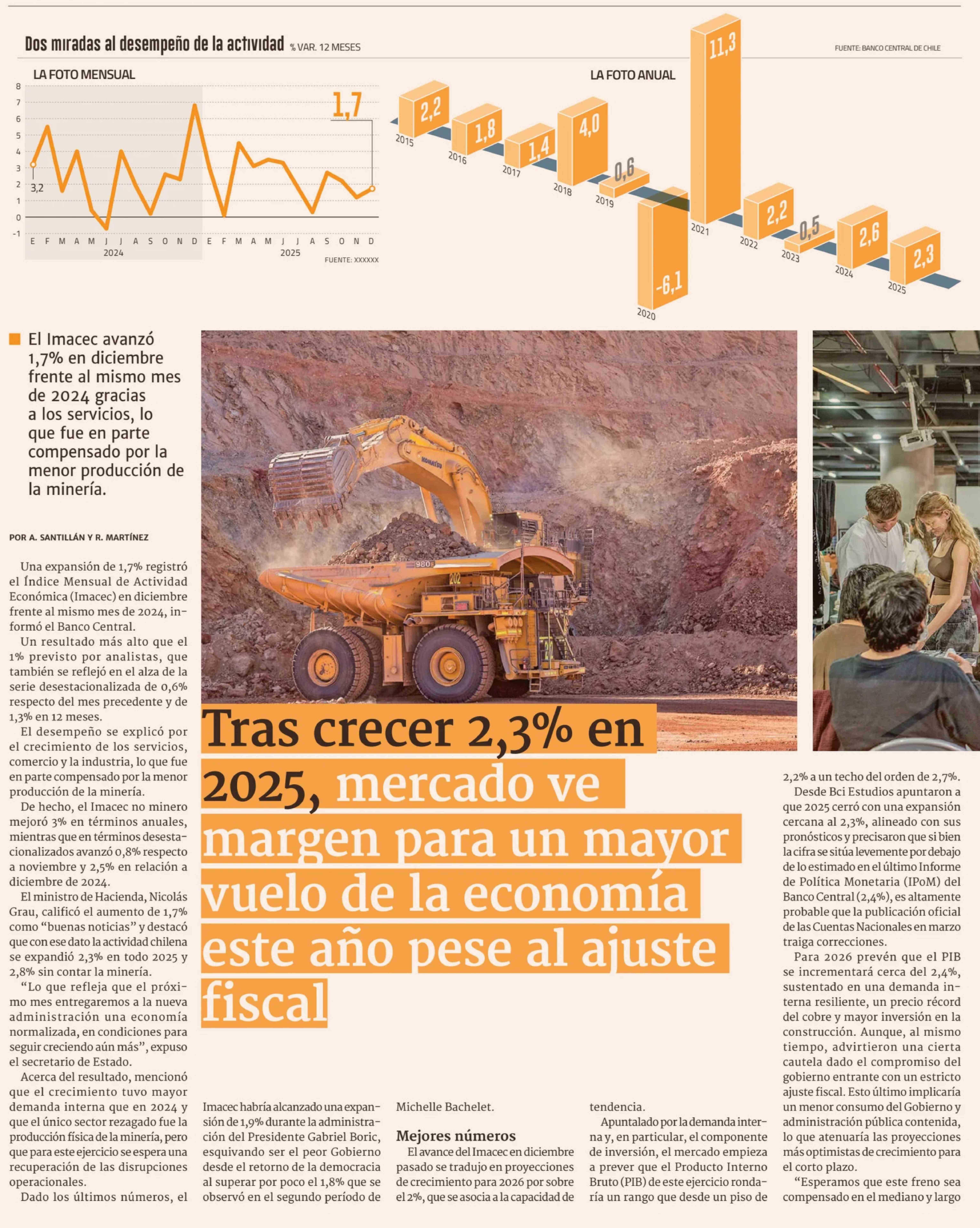 Título: Tras crecer 2,3% en 2025, mercado ve margen para un mayor vuelo de la economía este año pese al ajuste fiscal
