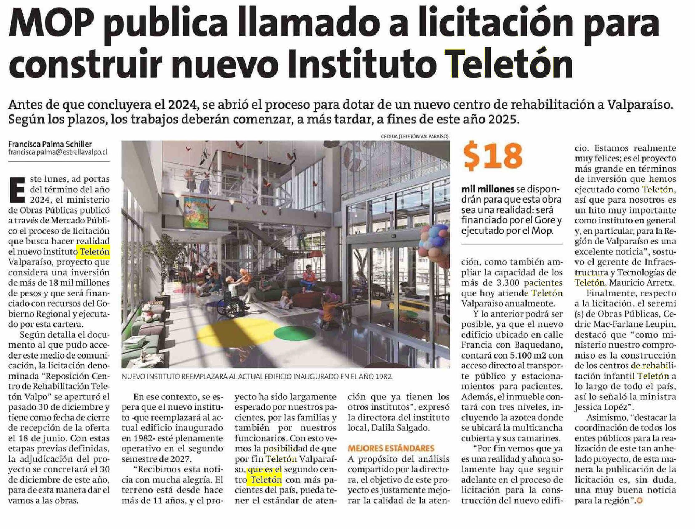 MOP publica llamado a licitación para construir nuevo Instituto Teletón
