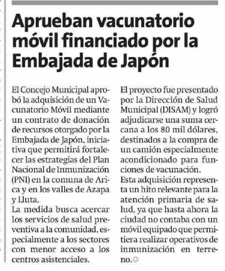 Aprueban vacunatorio móvil financiado por la Embajada de Japón