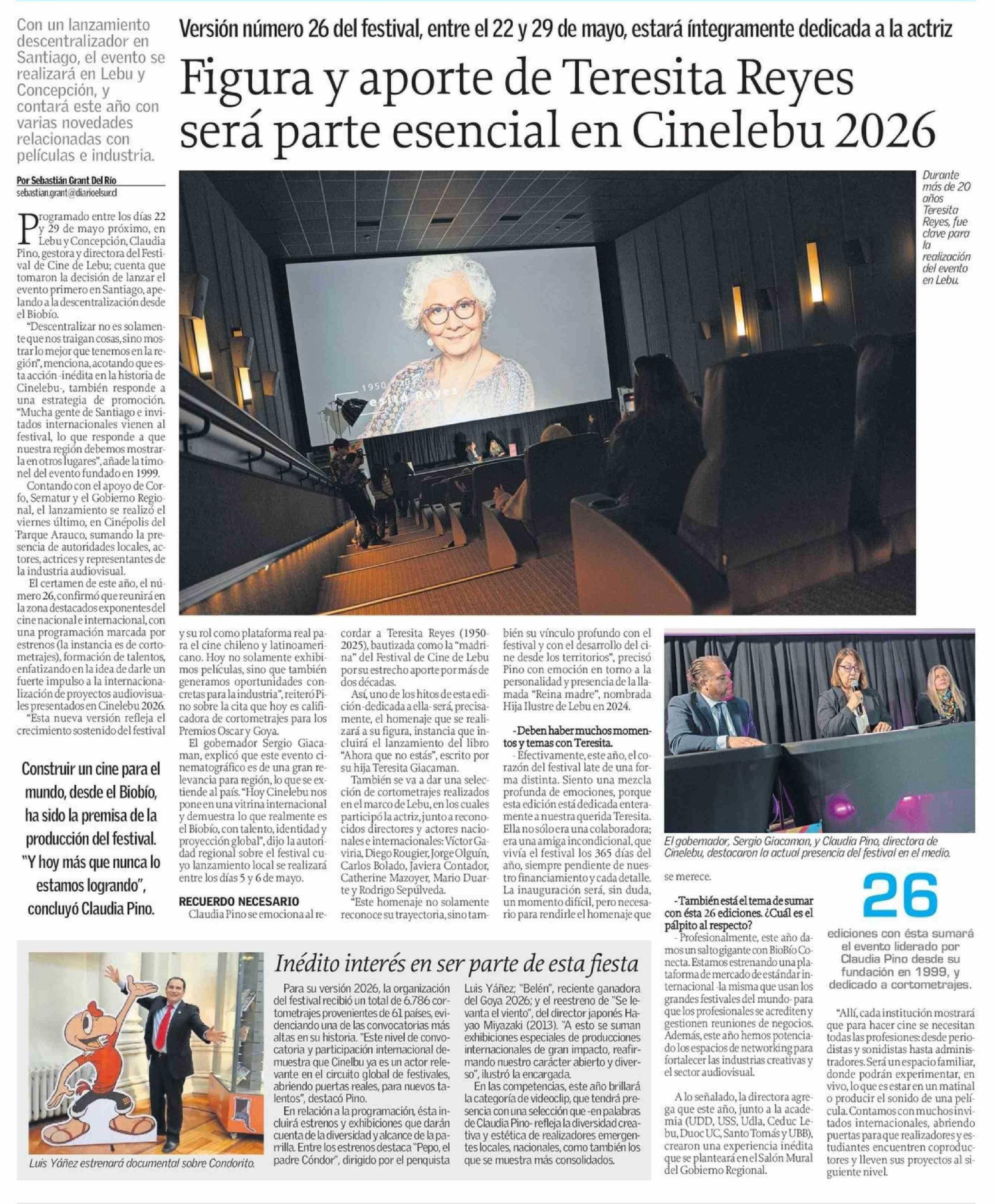 Figura y aporte de Teresita Reyes será parte esencial en Cinelebu 2026