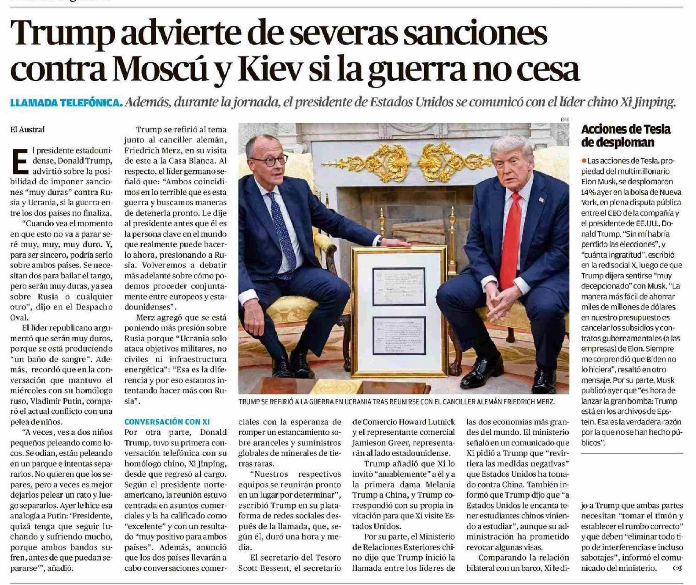 Trump advierte de severas sanciones contra Moscú y Kiev si la guerra no cesa