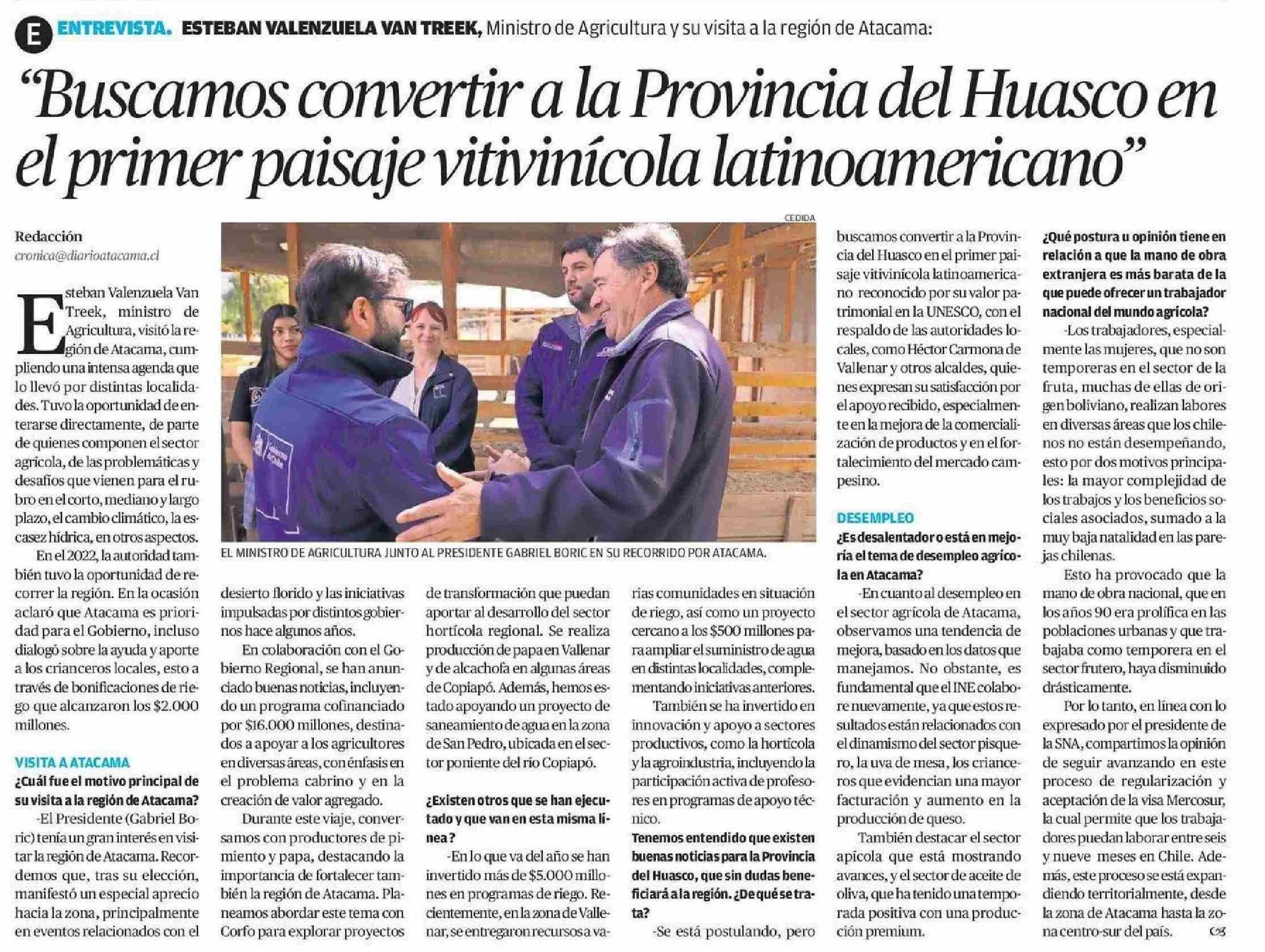 “Buscamos convertir a la Provincia del Huasco en el primer paisaje vitivinícola latinoamericano”