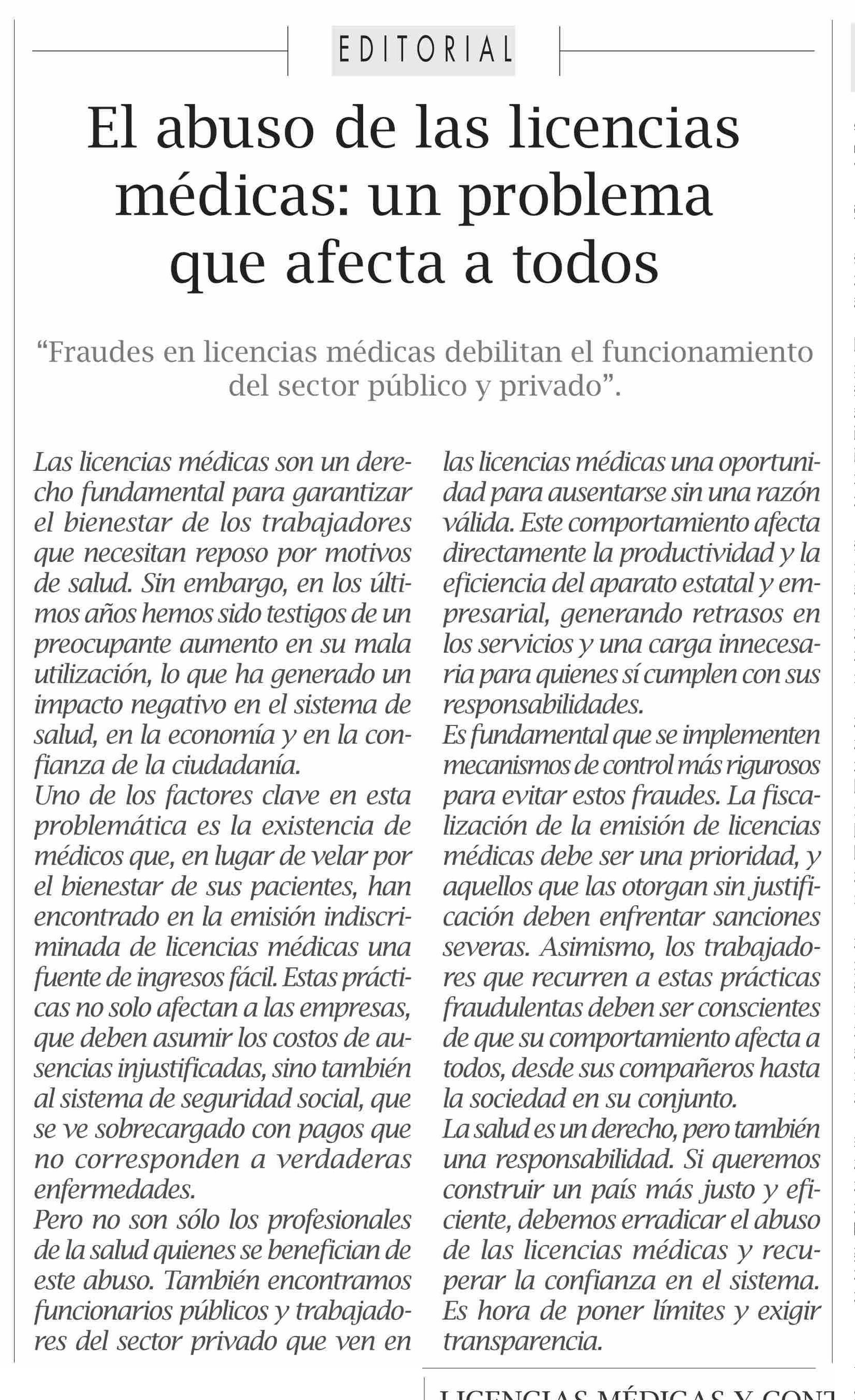 EDITORIAL: El abuso de las licencias médicas: un problema que afecta a todos