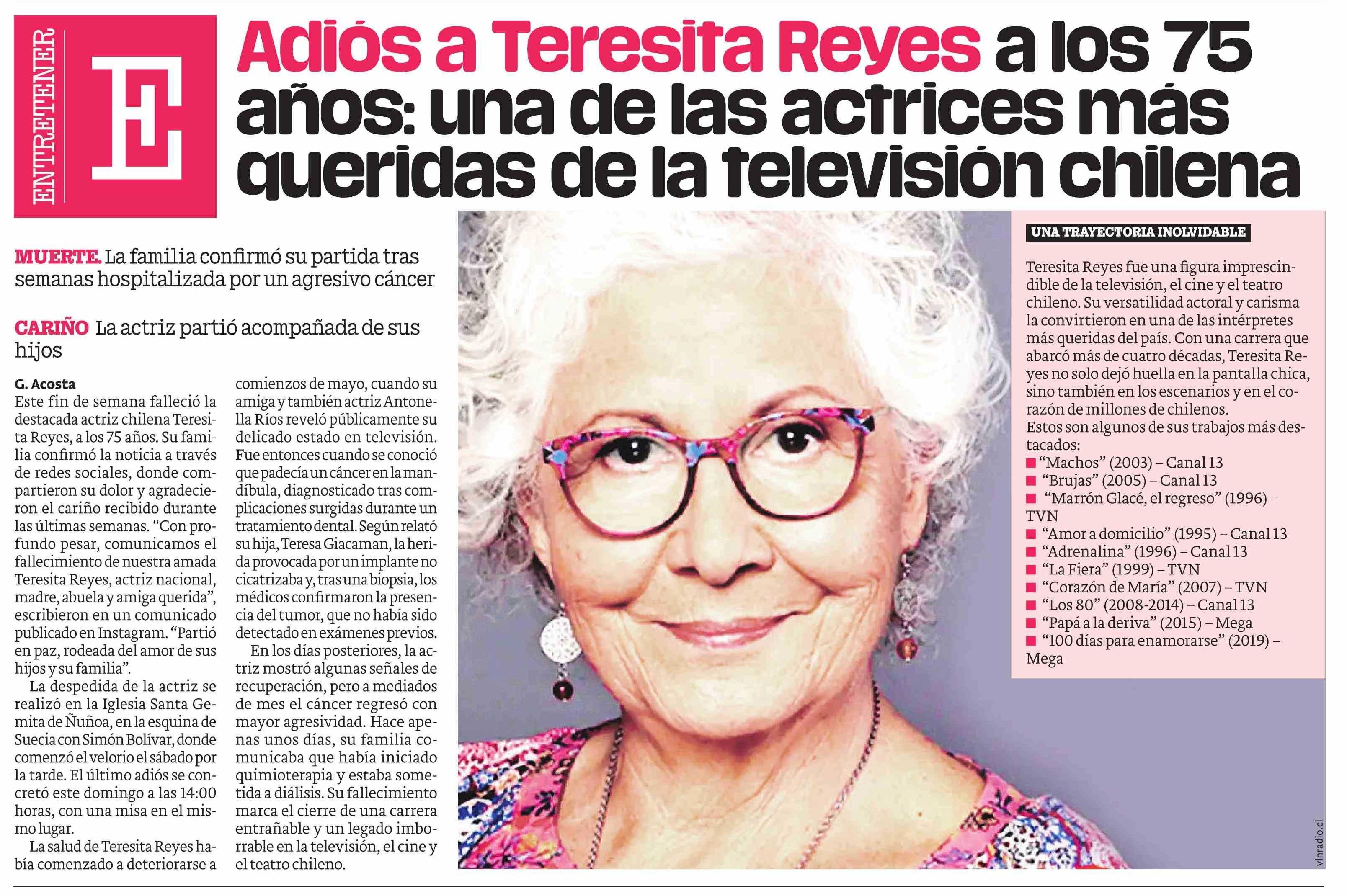 Adiós a Teresita Reyes a los 75 años: una de las actrices más queridas de la televisión chilena