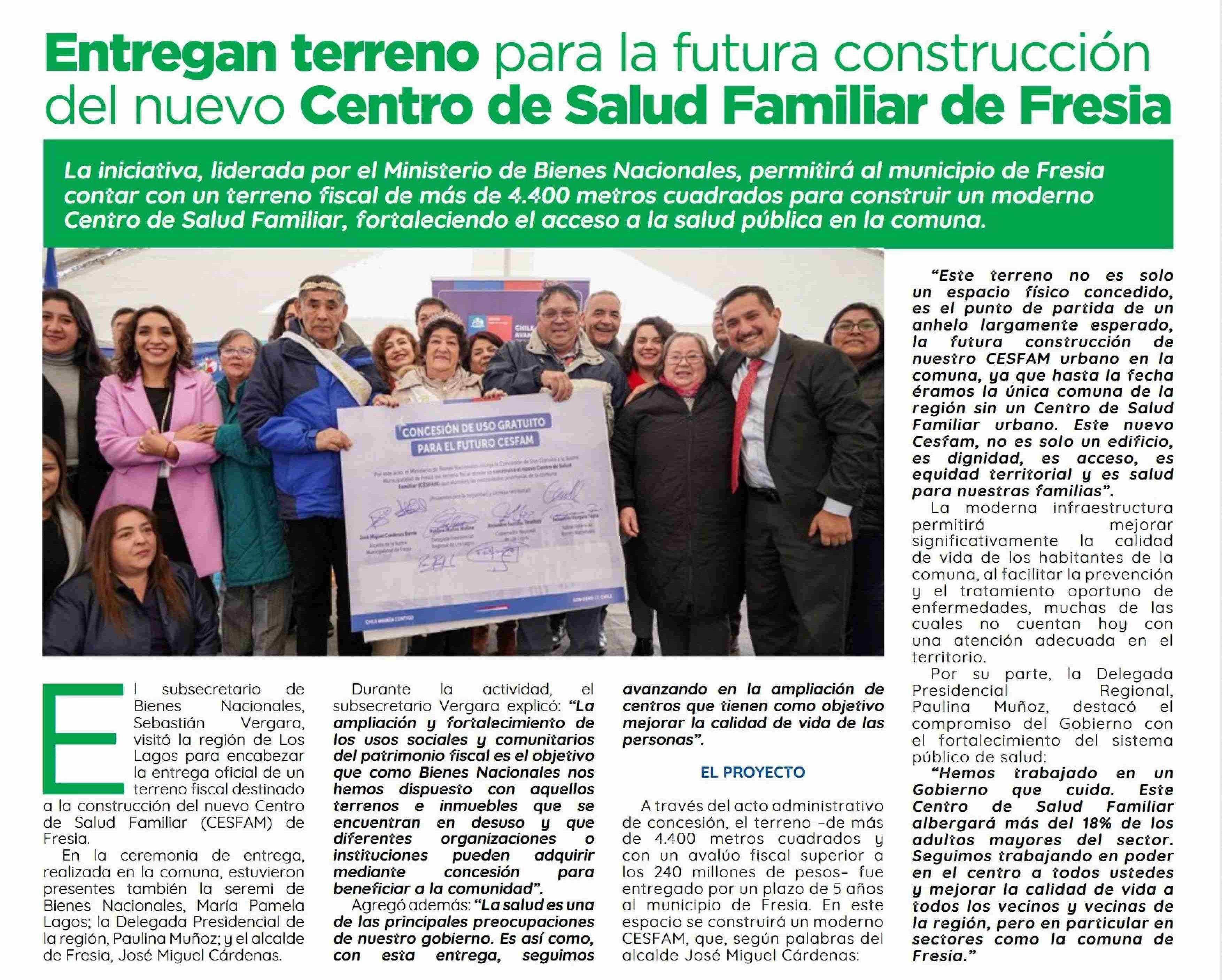 Entregan terreno para la futura construcción del nuevo Centro de Salud Familiar de Fresia