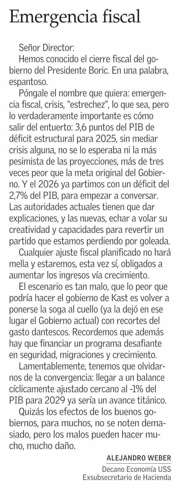 Cartas: Emergencia fiscal