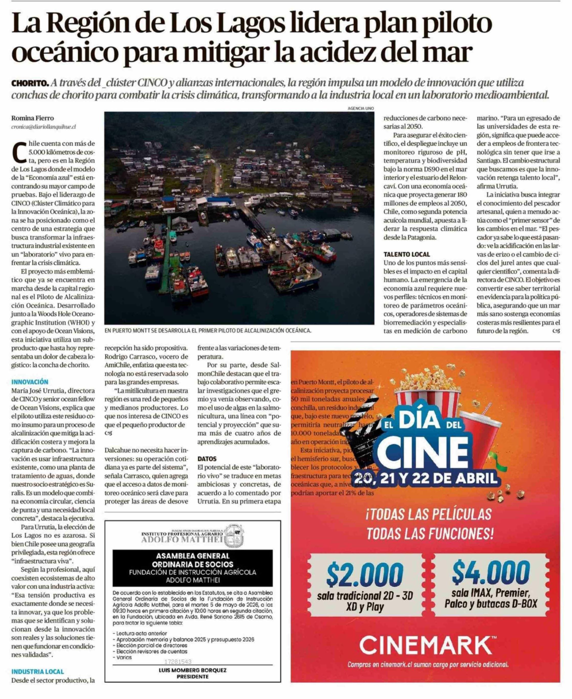 La Región de Los Lagos lidera plan piloto oceánico para mitigar la acidez del mar