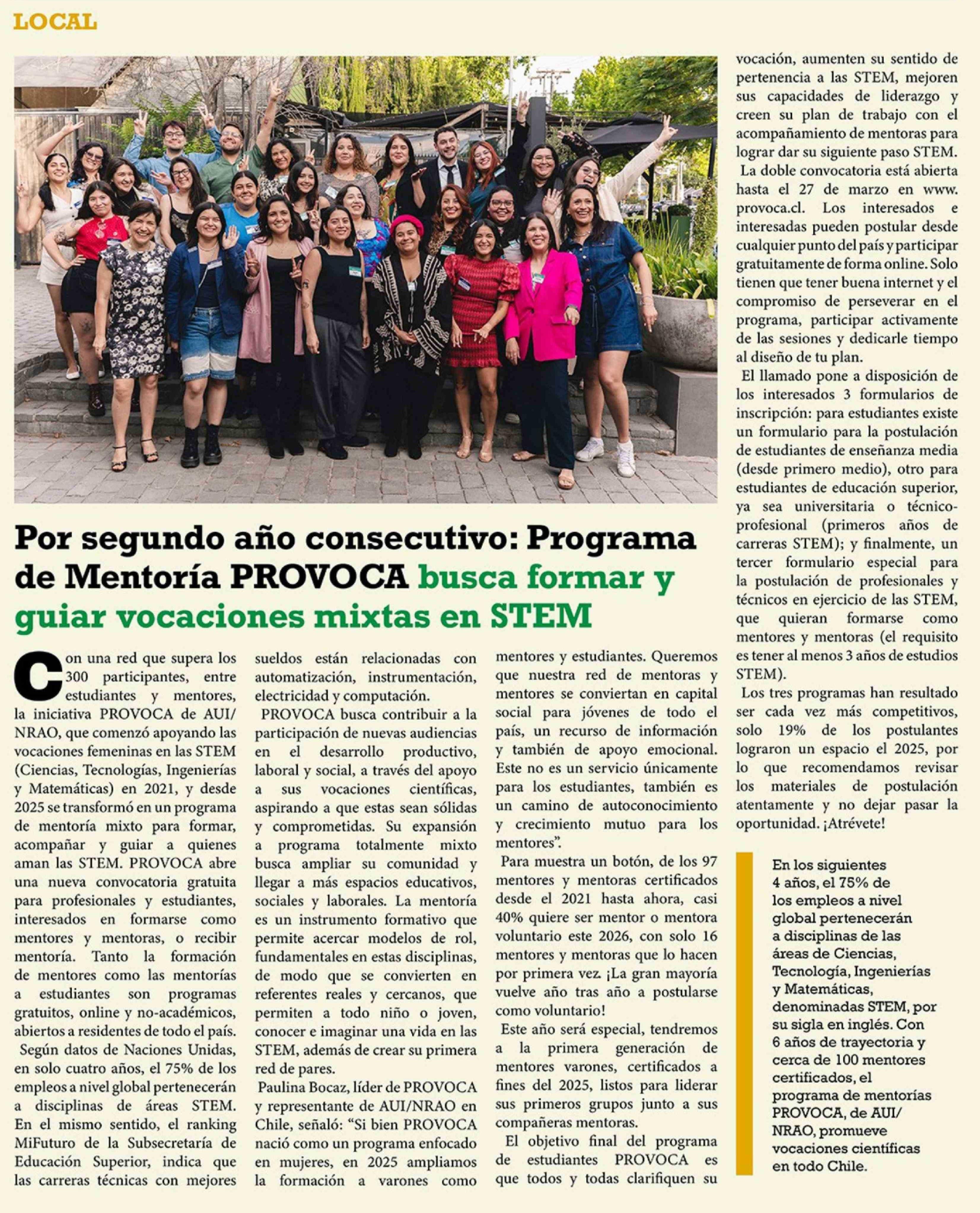 Por segundo año consecutivo: Programa de Mentoría PROVOCA busca formar y guiar vocaciones mixtas en STEM