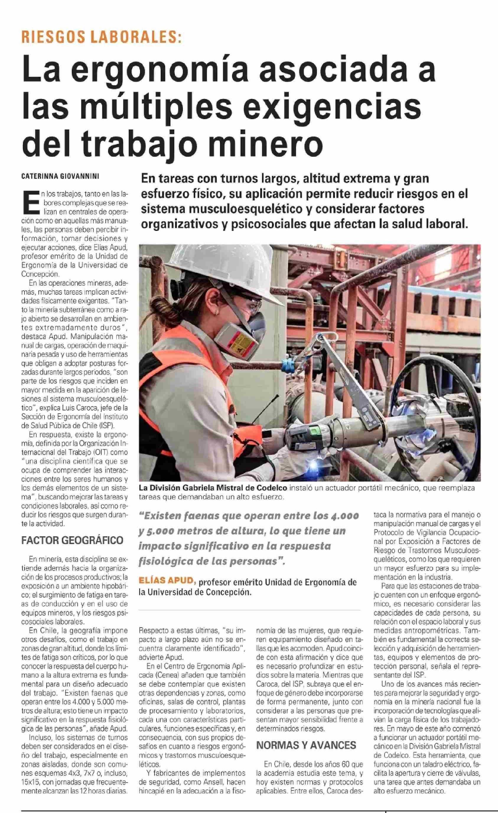 La ergonomía asociada a las múltiples exigencias del trabajo minero