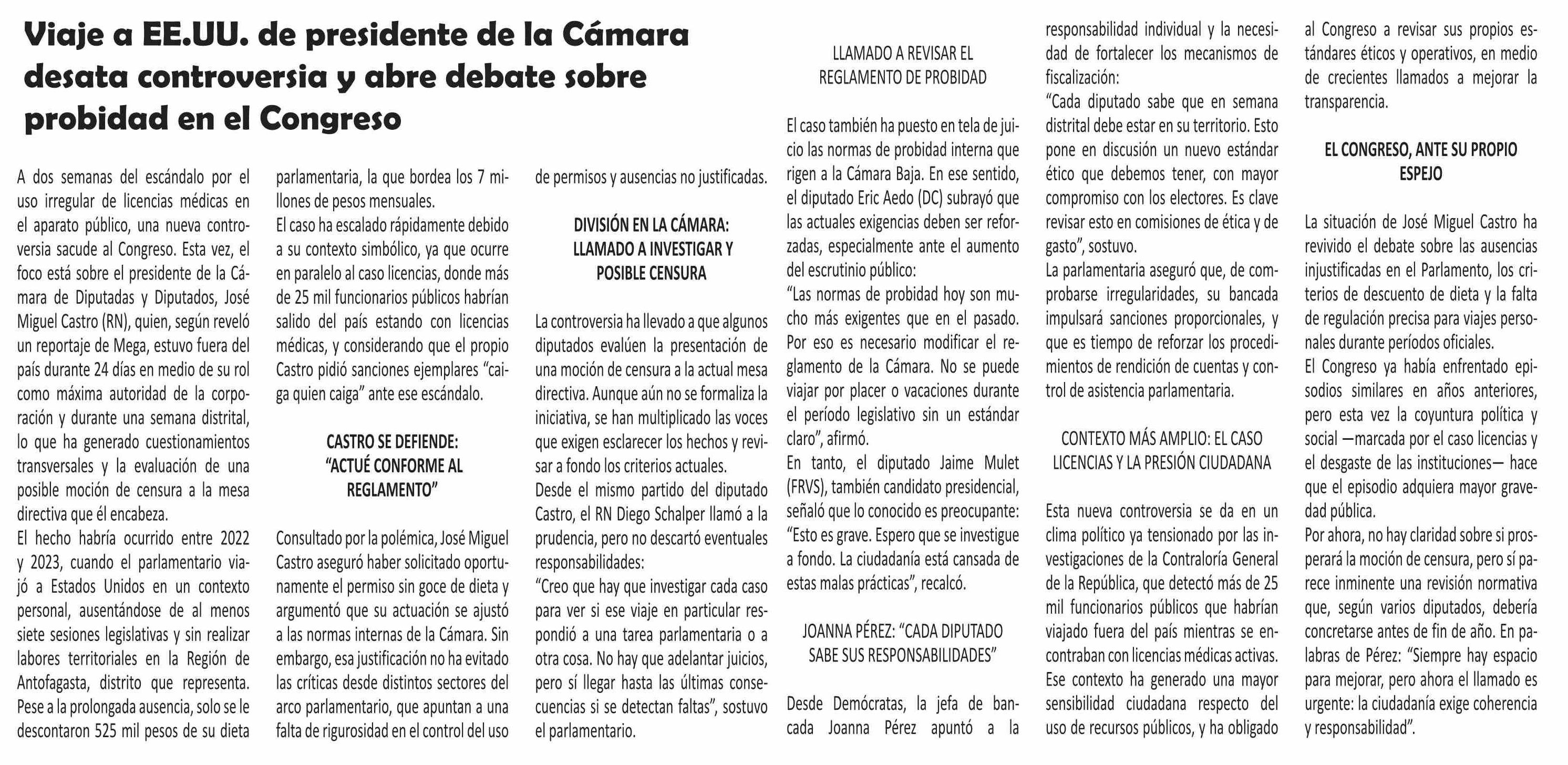 Viaje a EE.UU. de presidente de la Cámara desata controversia y abre debate sobre probidad en el Congreso