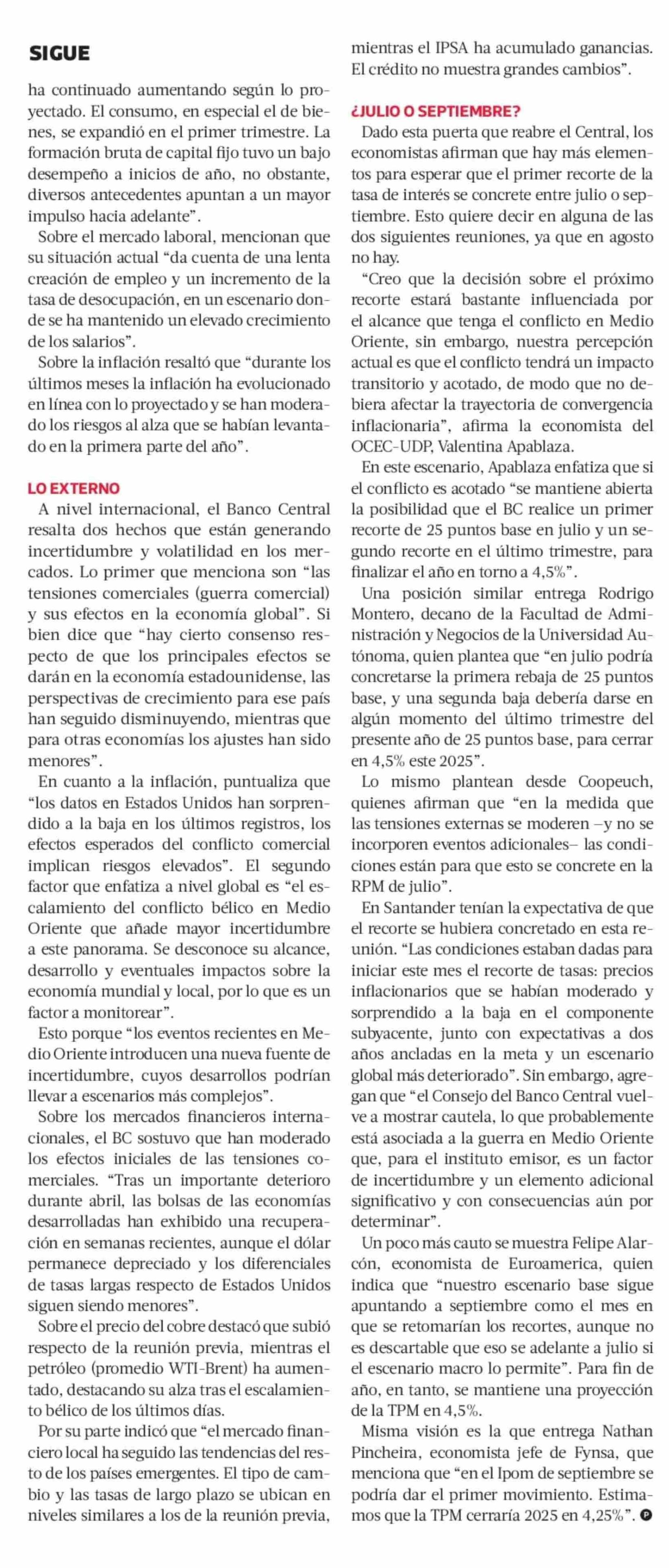 Banco Central abre la puerta a retomar las bajas de tasas y economistas anticipan que sería entre julio y septiembre