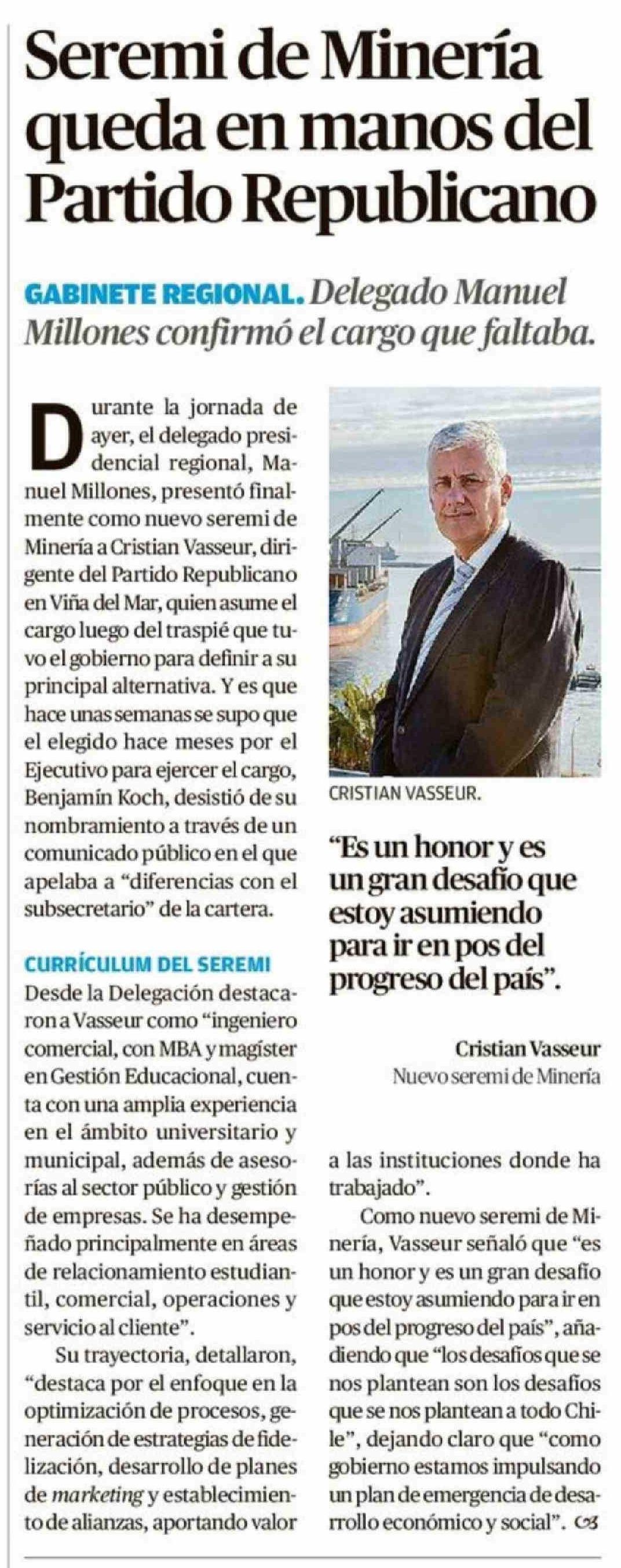Título: Seremi de Minería queda en manos del Partido Republicano