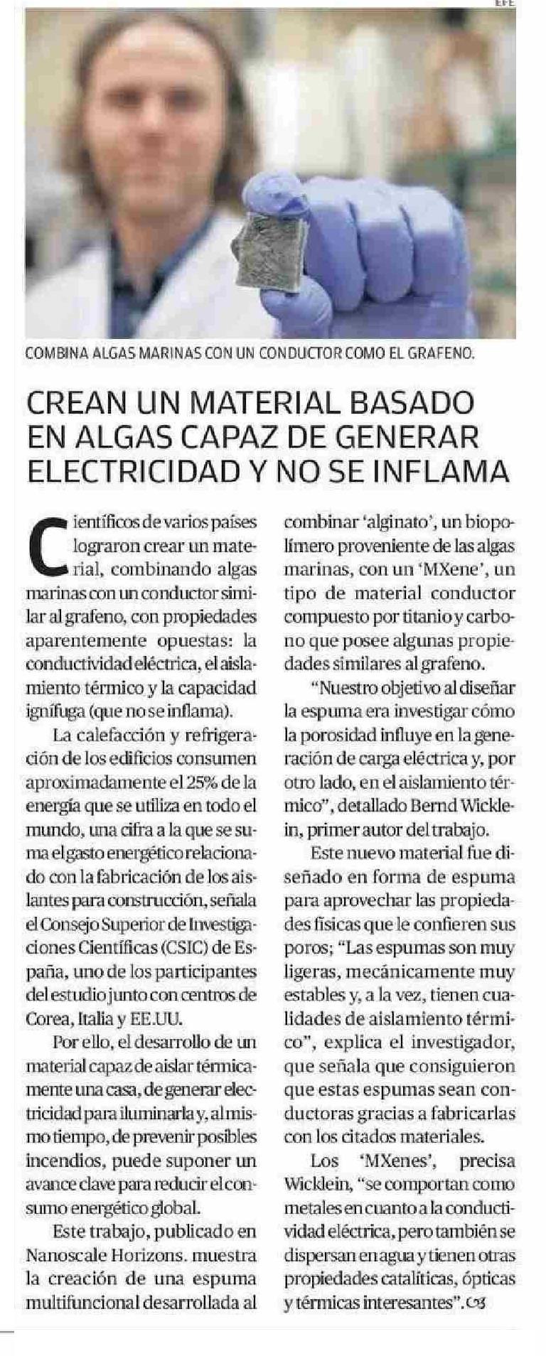 CREAN UN MATERIAL BASADO EN ALGAS CAPAZ DE GENERAR ELECTRICIDAD Y NO SE INFLAMA