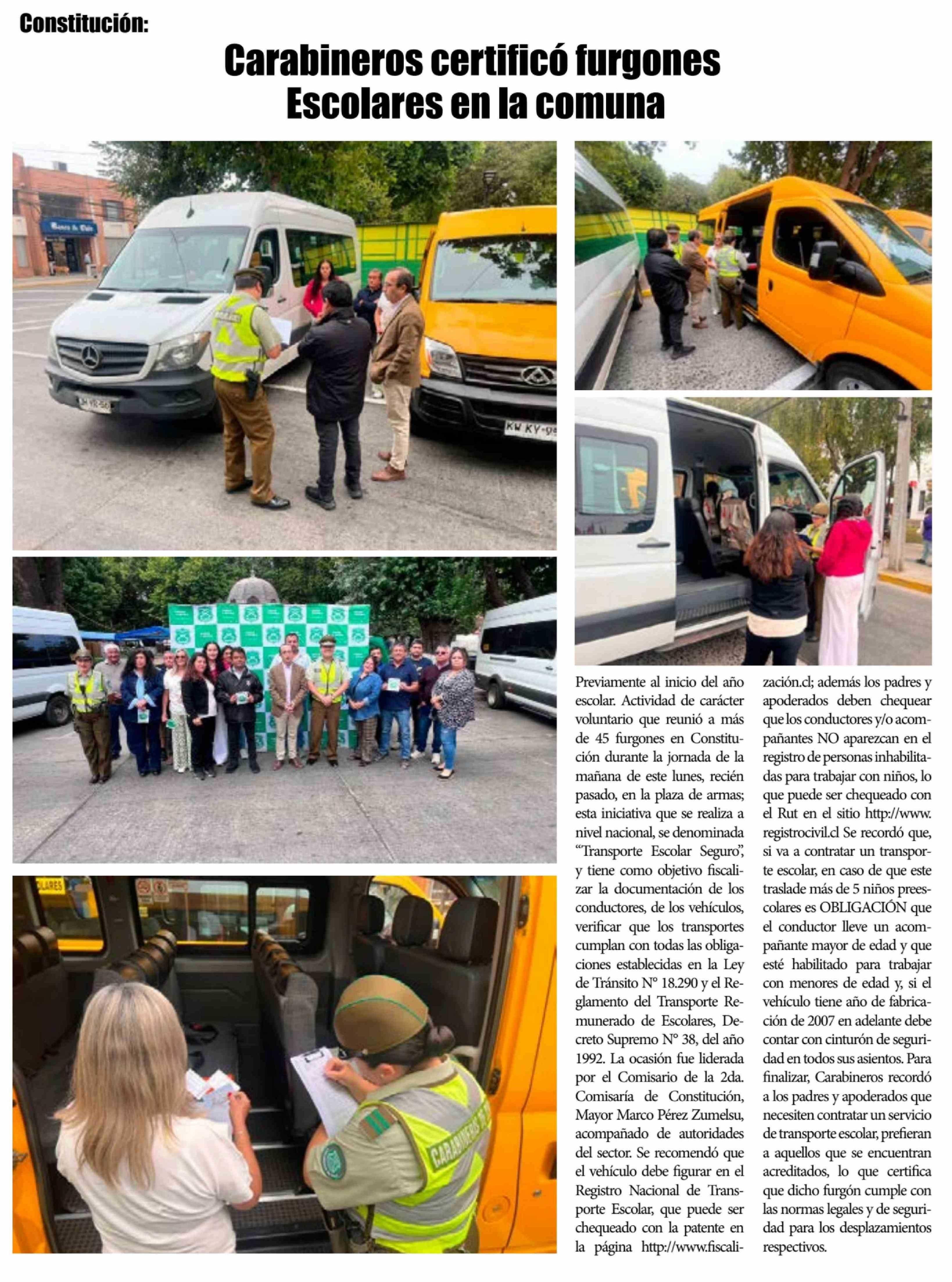 Carabineros certificó furgones Escolares en la comuna