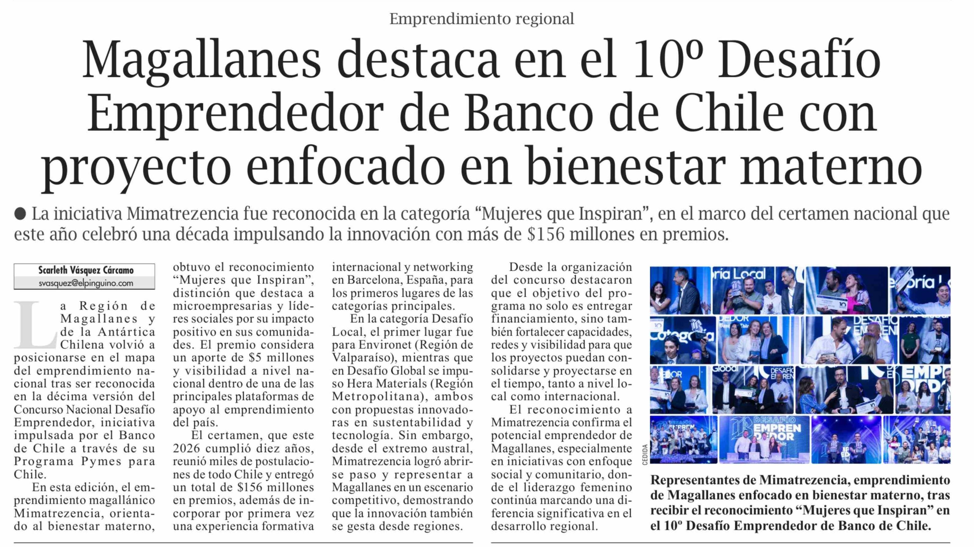 Magallanes destaca en el 10° Desafío Emprendedor de Banco de Chile con proyecto enfocado en bienestar materno