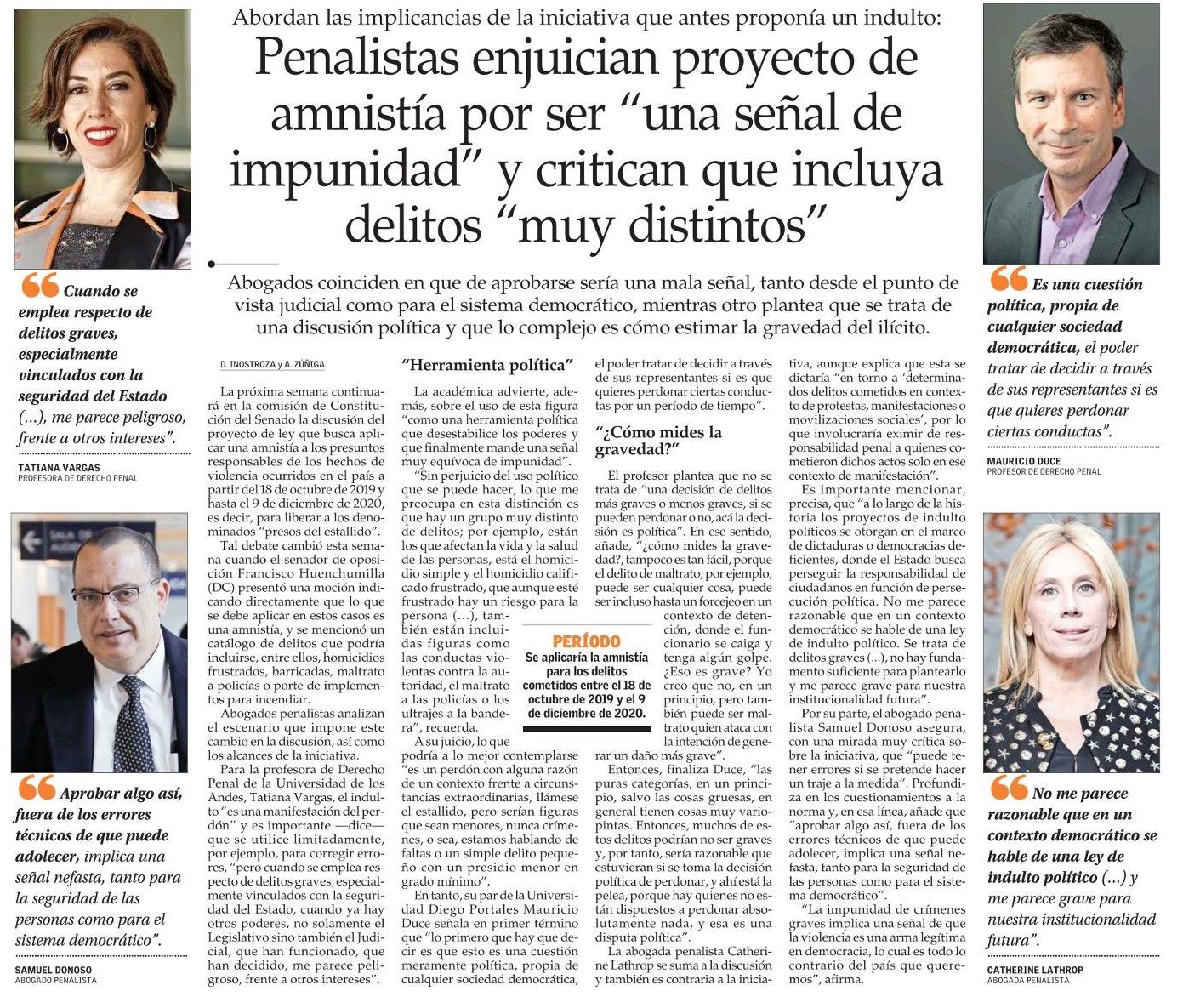 Penalistas enjuician proyecto de amnistía por ser “una señal de impunidad” y critican que incluya delitos “muy distintos”