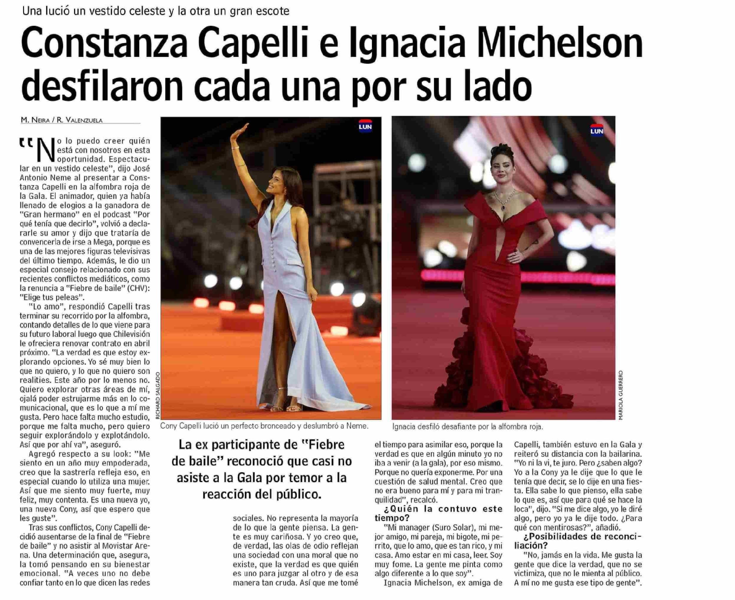 Constanza Capelli e Ignacia Míchelson desfilaron cada una por su lado
